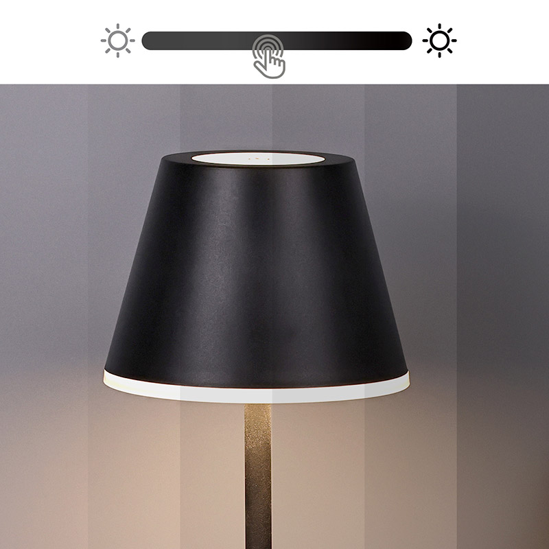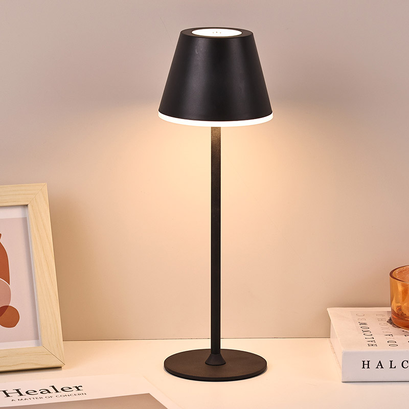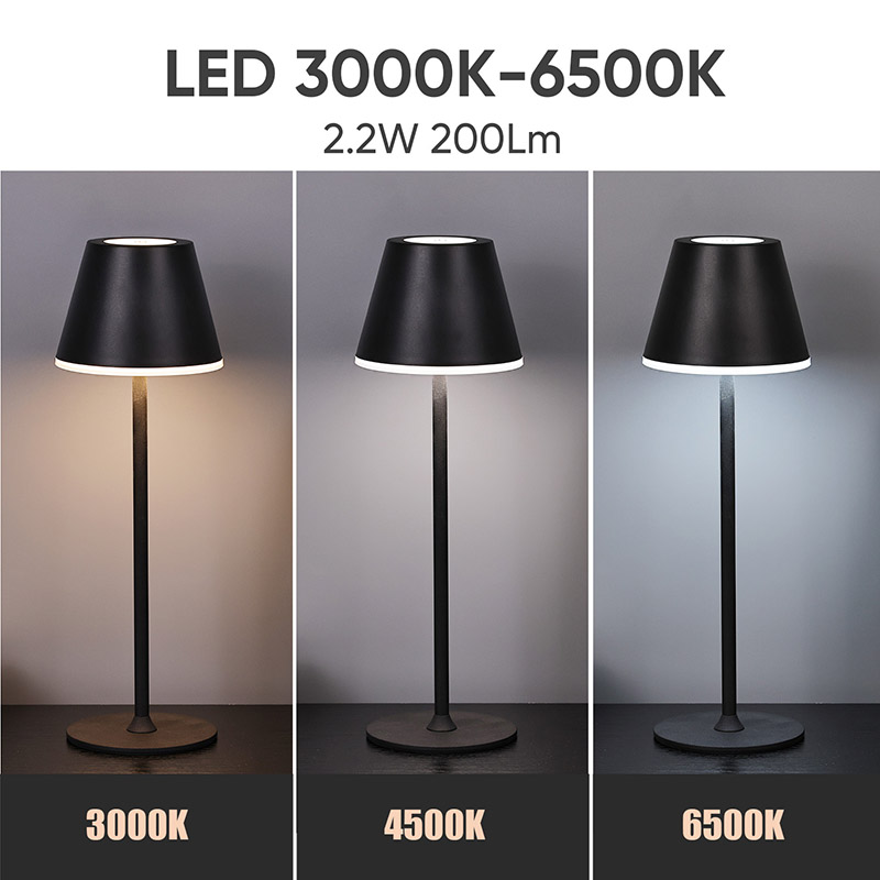 అసెంబ్లీ కార్డ్లెస్ లెడ్ టేబుల్ ల్యాంప్ అనేది షేడ్ సెంటర్ పైభాగంలో టచ్ బటన్. లైట్ల స్విచ్ను మరియు మూడు లేత రంగుల మార్పిడిని నియంత్రించగలదు, క్రింది చిత్రం వలె
