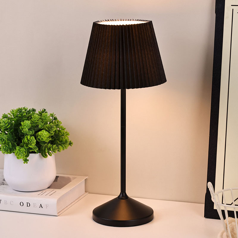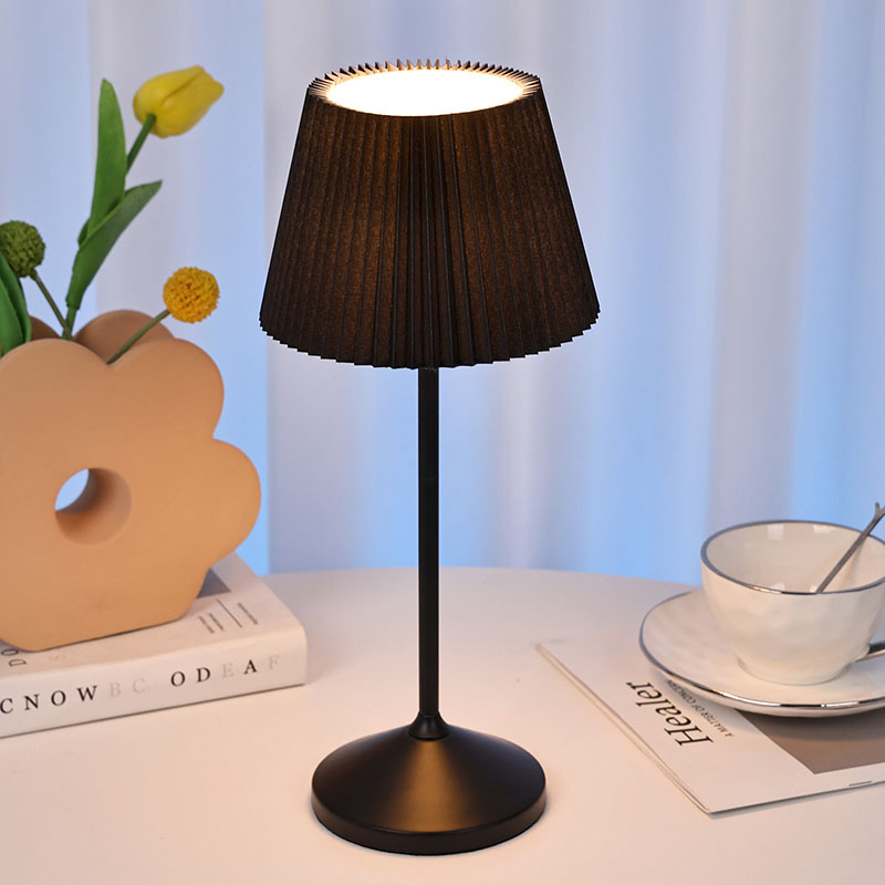 అస్పష్టత స్విచ్ తాకండినల్లటి గుడ్డ కవర్ అద్భుతమైన ఆకృతిని కలిగి ఉంది, సున్నితమైన మరియు లేయర్డ్ ఫోల్డ్లు, ఒక సున్నితమైన కళాకృతి వలె, మొత్తం దీపానికి చక్కదనం మరియు శృంగారాన్ని జోడిస్తుంది. మెటల్ బేస్ మొండితనాన్ని మరియు సున్నితత్వాన్ని వెదజల్లుతుంది, దృఢమైనది, మన్నికైనది మరియు మంచి స్థిరత్వాన్ని కలిగి ఉంటుంది, ఫాబ్రిక్ కవర్ను పూర్తి చేస్తుంది