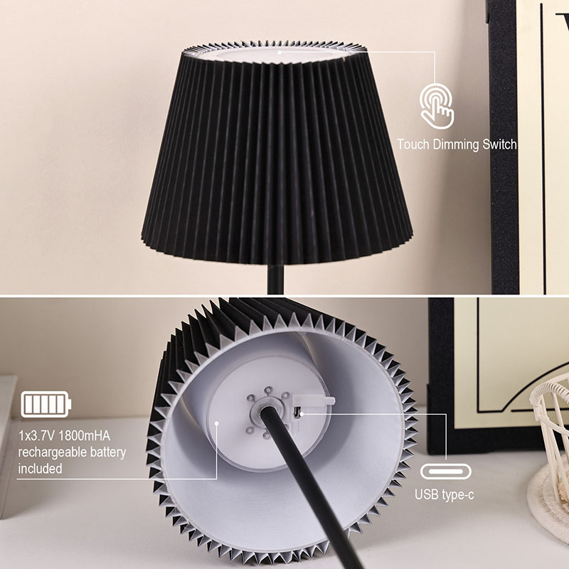 ఫాబ్రిక్ షేడ్తో ఉన్న బ్లాక్ లెడ్ డెస్క్ ల్యాంప్ మూడు స్థాయిల డిమ్మింగ్ ఫంక్షన్తో అమర్చబడి ఉంటుంది, ఇది విభిన్న దృశ్యాలలో మీ విభిన్న అవసరాలను తీర్చగలదు. మీరు ప్రశాంతమైన మరియు ప్రశాంతమైన నిద్ర వాతావరణాన్ని సృష్టించాలనుకున్నప్పుడు, దానిని సున్నితంగా అత్యల్ప స్థాయికి సెట్ చేయండి మరియు మృదువైన వెచ్చని కాంతి ప్రకాశవంతమైన చంద్రునిలా ఉంటుంది, ప్రశాంతమైన కాంతిని కలిగిస్తుంది మరియు ప్రశాంతంగా నిద్రించడానికి మీకు తోడుగా ఉంటుంది బ్లాక్ లెడ్ డెస్క్ ల్యాంప్లో ఫాబ్రిక్ షేడ్తో పాటు అంతర్నిర్మిత బ్యాటరీ కూడా ఉంది, ఇది దాని ఆలోచనాత్మక డిజైన్తో దాని ఉపయోగ సౌలభ్యాన్ని బాగా పెంచుతుంది.