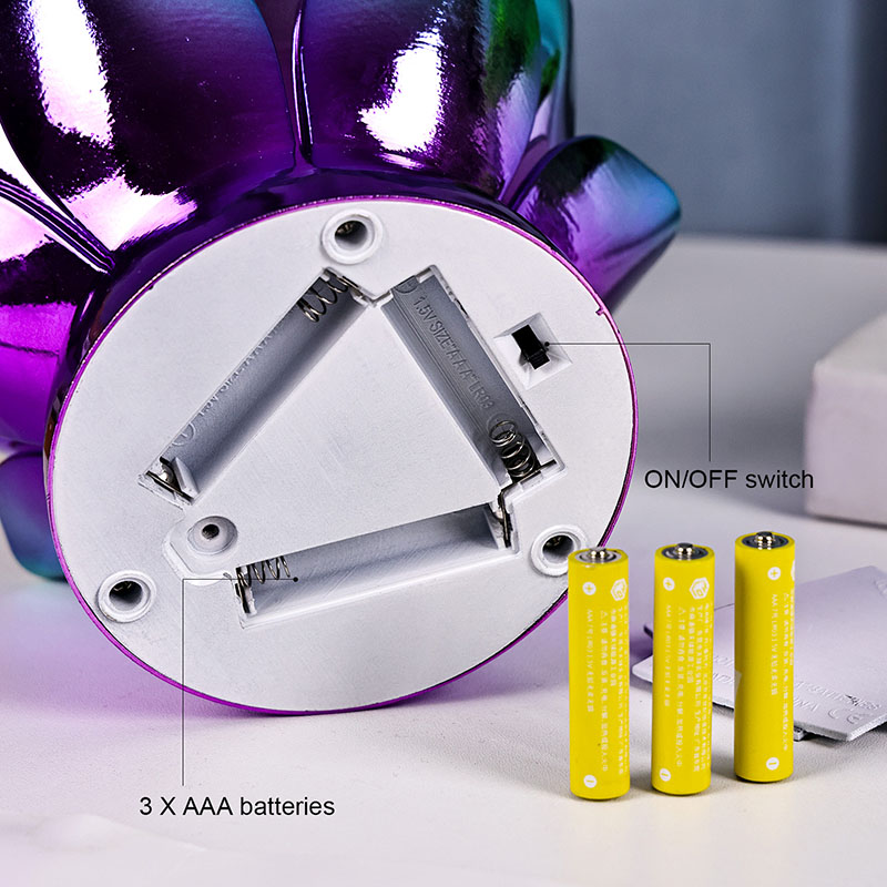నైట్ లైట్ యొక్క ఆధారం విలాసవంతమైన స్ప్రే-పెయింటెడ్ పర్పుల్తో అధిక-నాణ్యత ప్లాస్టిక్తో రూపొందించబడింది