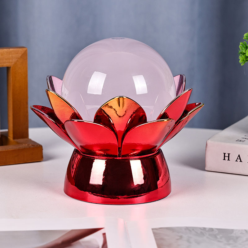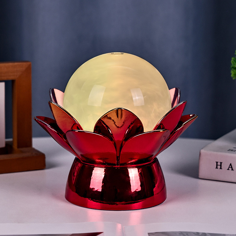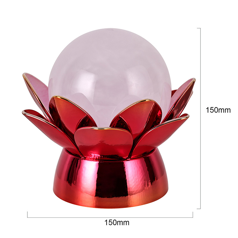అధిక-నాణ్యత పదార్థాల నుండి రూపొందించబడిన, బేస్ పాలిష్ చేసిన మెటల్తో అద్భుతమైన ఎరుపు-బంగారు ముగింపుతో తయారు చేయబడింది, ఇది కాంతిని అందంగా ప్రతిబింబిస్తుంది, దాని రూపానికి లోతు మరియు గొప్పతనాన్ని జోడిస్తుంది. లోటస్ డిజైన్ ఒక సౌందర్య కేంద్ర బిందువుగా మాత్రమే కాకుండా, తూర్పు సంప్రదాయాలలో పాతుకుపోయిన సంకేత అర్థాన్ని కూడా కలిగి ఉంటుంది - జ్ఞానోదయం, స్థితిస్థాపకత మరియు సామరస్యాన్ని సూచిస్తుంది. ప్రతిబింబ ఉపరితలం దృశ్య ప్రభావాన్ని పెంచుతుంది, తక్కువ-కాంతి వాతావరణంలో కూడా దీపం ప్రకాశిస్తుంది.