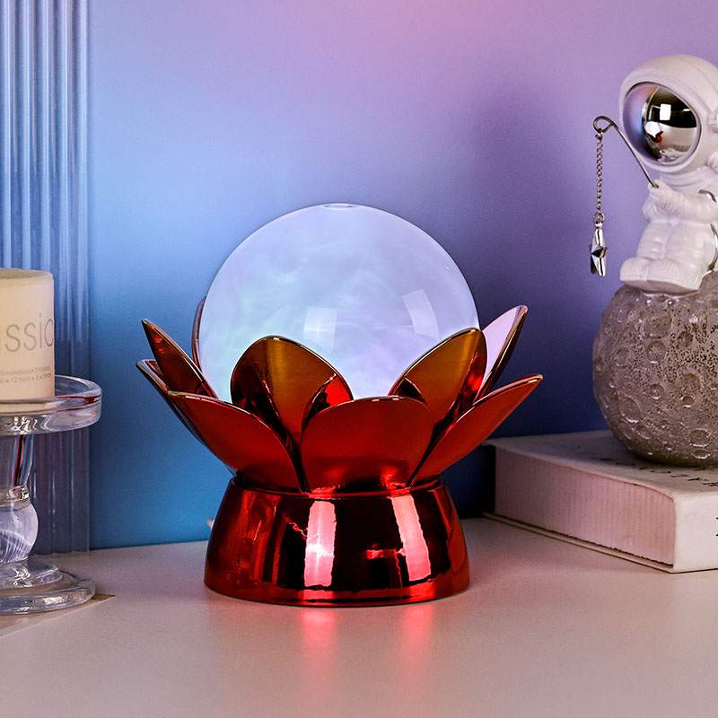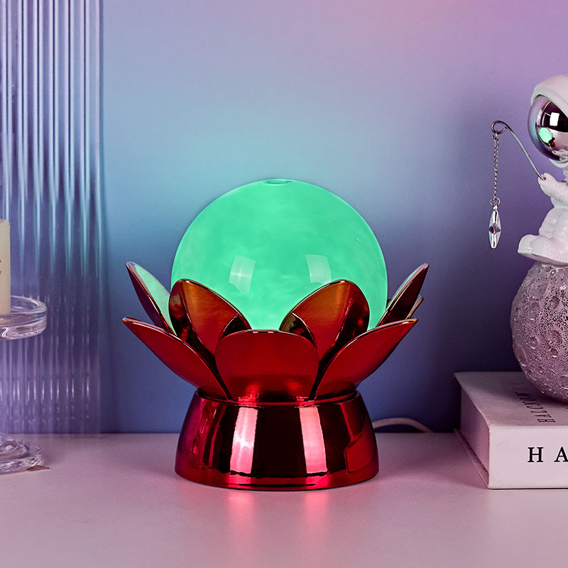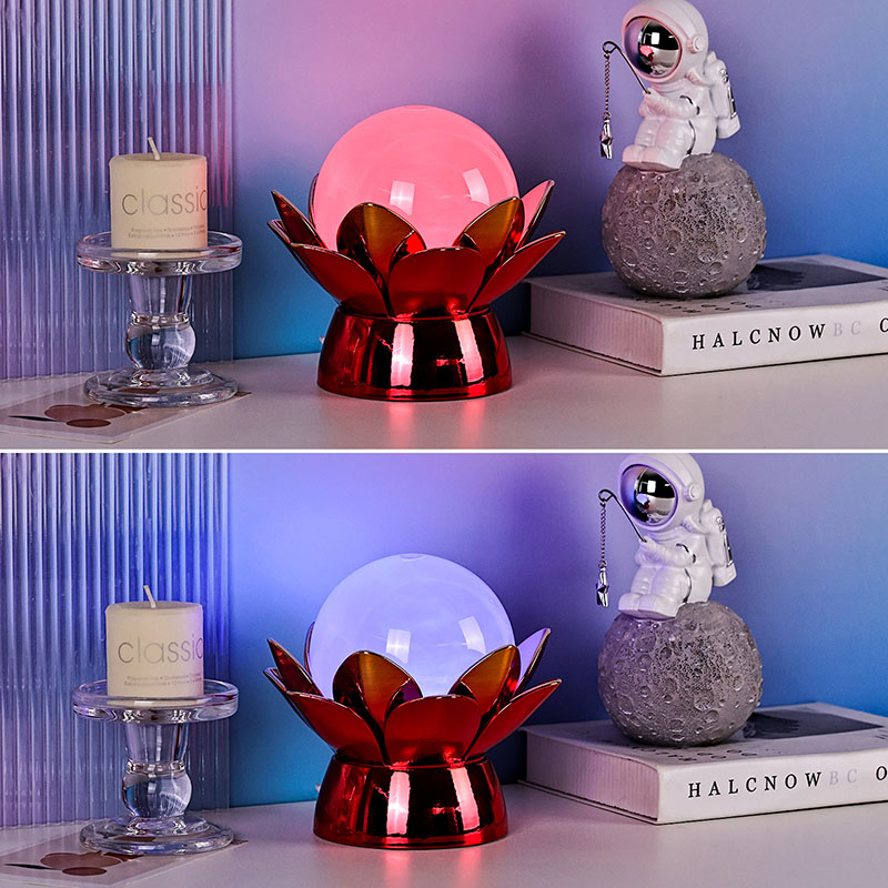 గ్లోబ్ లోపల, అధునాతన LED లైటింగ్ బహుళ-రంగు ప్రకాశాన్ని అందిస్తుంది, వినియోగదారులు వెచ్చని తెలుపు, సున్నితమైన గులాబీ, ప్రశాంతమైన నీలం మరియు బంగారు పసుపు వంటి మృదువైన రంగులతో మానసిక స్థితిని అనుకూలీకరించడానికి అనుమతిస్తుంది. రంగు మార్చే ఫీచర్ను మాన్యువల్గా నియంత్రించవచ్చు లేదా స్వయంచాలకంగా సైకిల్కు సెట్ చేయవచ్చు, కాలక్రమేణా అభివృద్ధి చెందే డైనమిక్ మరియు క్యాప్టివేటింగ్ డిస్ప్లేను అందిస్తుంది. ఈ యాంబియంట్ లైటింగ్ బెడ్రూమ్లు, లివింగ్ రూమ్లు, యోగా స్పేస్లు లేదా అందం మరియు ప్రశాంతతను మెచ్చుకునే ప్రియమైనవారికి ఆలోచనాత్మక బహుమతిగా అనువైనది.