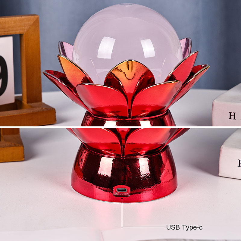 మంత్రముగ్ధులను చేసే లోటస్ క్లౌడ్ గ్లోబ్ నైట్ లైట్ - ప్రకృతి-ప్రేరేపిత డిజైన్, ఓదార్పు వాతావరణం మరియు ఆధునిక సాంకేతికత యొక్క మంత్రముగ్దులను చేసే కలయిక. ఈ సొగసైన అలంకార దీపం ఒక ప్రత్యేక ద్రవంతో నిండిన అపారదర్శక గాజు గ్లోబ్ను కలిగి ఉంటుంది, ఇది డ్రిఫ్టింగ్ మేఘాలను అనుకరిస్తుంది, ఇది శాంతముగా తిరుగుతూ మరియు ప్రవహిస్తున్నప్పుడు ప్రశాంతమైన, ఎథెరియల్ ప్రభావాన్ని సృష్టిస్తుంది. పవిత్రమైన లోటస్ ఫ్లవర్ నుండి ప్రేరణ పొందిన ఈ రాత్రి కాంతి, స్వచ్ఛత, శాంతి మరియు ఆధ్యాత్మిక మేల్కొలుపుకు ప్రతీకగా వికసించే తామర రేకుల ఆకారంలో అందంగా రూపొందించబడిన లోహపు పునాదిపై ఉంటుంది.