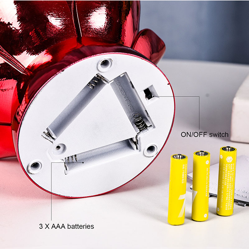 మూడు AAA బ్యాటరీలు (చేర్చబడినవి) ద్వారా ఆధారితం, లోటస్ క్లౌడ్ గ్లోబ్ నైట్ లైట్ ఇన్స్టాల్ చేయడం సులభం మరియు పోర్టబుల్, వైరింగ్ లేదా ఎలక్ట్రికల్ అవుట్లెట్ అవసరం లేదు. దీని కాంపాక్ట్ సైజు ఎక్కువ స్థలాన్ని తీసుకోకుండానే నైట్స్టాండ్, డెస్క్, షెల్ఫ్ లేదా బలిపీఠంపై వివిధ సెట్టింగ్లకు అనుకూలంగా ఉంటుంది. బ్యాటరీతో నడిచే డిజైన్ సురక్షితమైన ఆపరేషన్ను కూడా నిర్ధారిస్తుంది, ఇది పిల్లల గదులకు లేదా విద్యుత్తు అంతరాయం సమయంలో ఉపయోగించడానికి అనుకూలంగా ఉంటుంది.