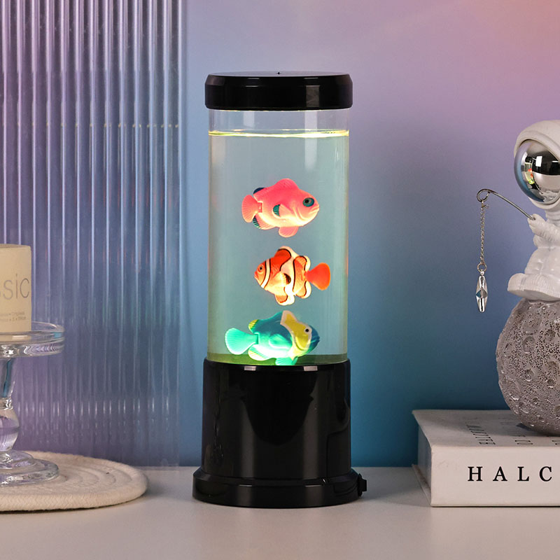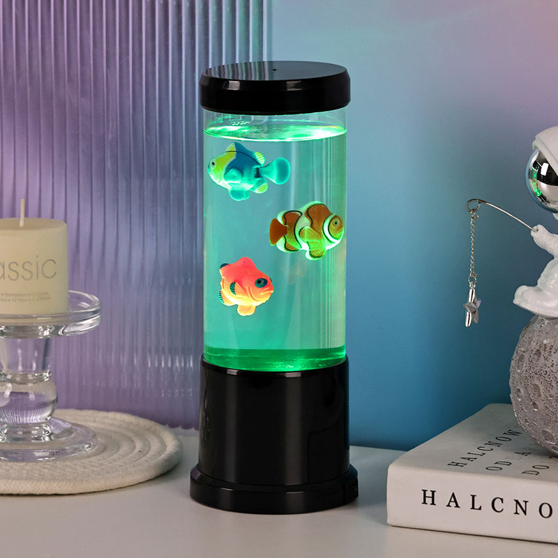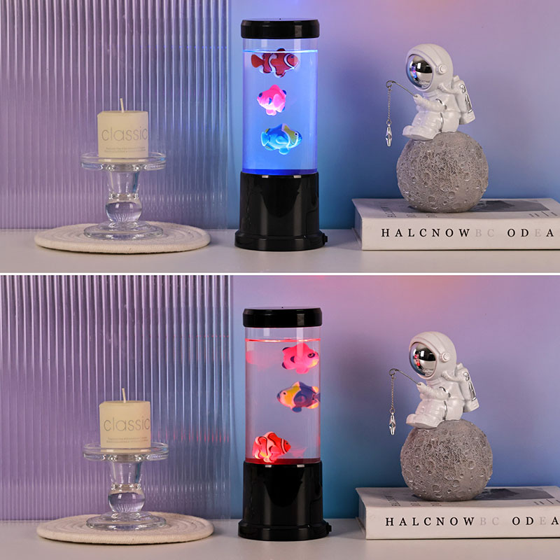 దాని దృశ్యమాన ఆకర్షణకు మించి, ఫిష్ ల్యాంప్ జెల్లీ ఫిష్ దీపం చికిత్సా సాధనంగా పనిచేస్తుంది. చేప మరియు బబ్లింగ్ నీటి లయబద్ధమైన చలనం బుద్ధిపూర్వకతను ప్రోత్సహిస్తుంది, ఆందోళనను తగ్గిస్తుంది మరియు నిద్రలో కూడా సహాయపడుతుంది. దీని సున్నితమైన మెరుపు చీకటికి భయపడే పిల్లలకు అద్భుతమైన నైట్లైట్గా కూడా చేస్తుంది.