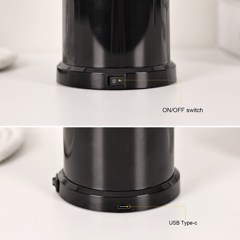 నిగనిగలాడే నలుపు బేస్ మరియు మూతతో రూపొందించబడిన ఈ దీపం ఏదైనా ఇంటీరియర్ డెకర్ను పూర్తి చేసే మినిమలిస్ట్ ఇంకా అధునాతన సౌందర్యాన్ని కలిగి ఉంటుంది. పడక పట్టిక, డెస్క్, షెల్ఫ్ లేదా లివింగ్ రూమ్ యాసపై ఉంచినా, దాని శుద్ధి చేసిన సిల్హౌట్ సొగసును జోడిస్తుంది, అయితే లోపల మంత్రముగ్ధులను చేస్తుంది. ప్రక్కన ఉన్న ఒక సాధారణ బటన్ స్విచ్ సులభమైన ఆపరేషన్ను అనుమతిస్తుంది-లైట్ను ఆన్ లేదా ఆఫ్ చేయడానికి నొక్కండి లేదా రంగురంగుల మోడ్ల ద్వారా సులభంగా సైకిల్ చేయండి.