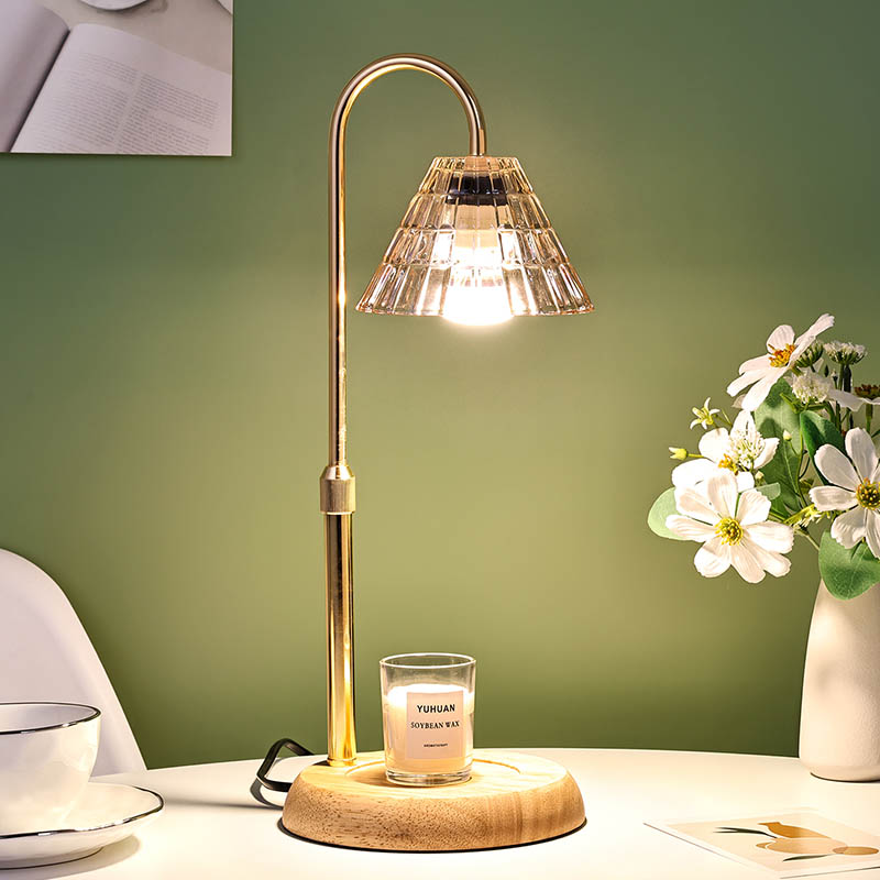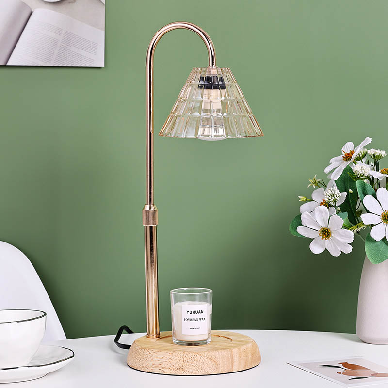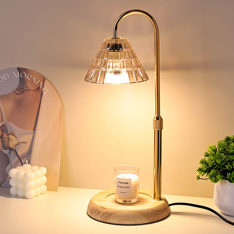అడ్జస్ట్ హైట్తో కూడిన గ్లాస్ షేడ్ టేబుల్ ల్యాంప్ అనేది సాంప్రదాయ డిజైన్ స్టైల్, ఇందులో చెక్క బేస్ మరియు గోల్డెన్ మెటల్ ల్యాంప్ పోస్ట్తో కూడిన సాంప్రదాయ లైట్ బల్బు ఉంటుంది.