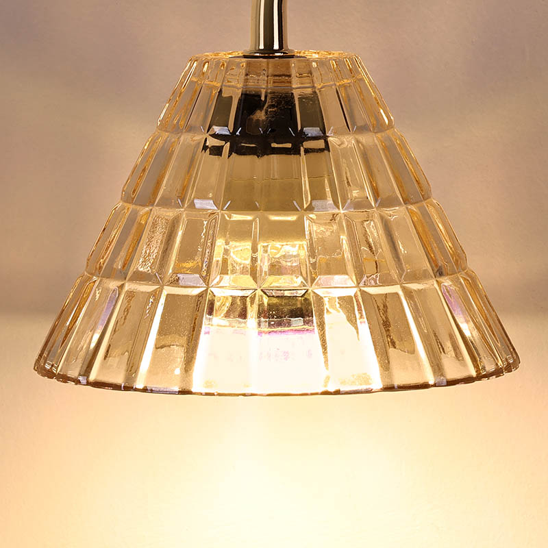 లాంప్షేడ్ పారదర్శక గాజుతో (యాక్రిలిక్) తయారు చేయబడింది మరియు వెచ్చని రంగు కాంతి చదవడానికి చాలా అనుకూలంగా ఉంటుంది. అడ్జస్ట్ హైట్తో గ్లాస్ షేడ్ టేబుల్ ల్యాంప్ యొక్క అతిపెద్ద అమ్మకపు పాయింట్, దాని డిజైన్తో పాటు, తిరిగే బటన్తో ఎత్తు సర్దుబాటు చేయగల ల్యాంప్ పోస్ట్, మరియు లైటింగ్ పరిధిని కూడా ఎత్తుకు అనుగుణంగా సర్దుబాటు చేయవచ్చు.