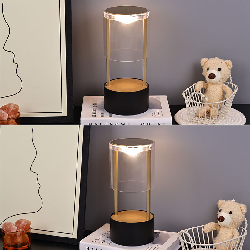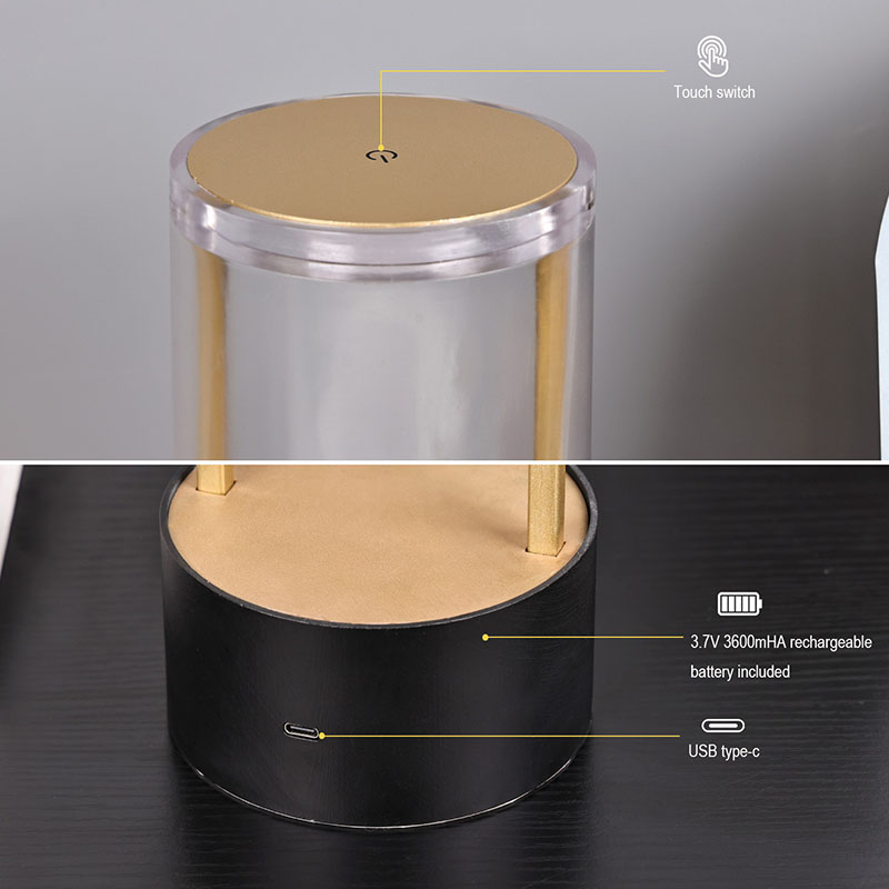 లాంతరు స్టైల్ స్మాల్ టేబుల్ ల్యాంప్ పైభాగంలో టచ్ సెన్సిటివ్ లైట్ స్విచ్ ఉంది, దిగువన టైప్-సి రీఛార్జ్ చేయగల ఛార్జింగ్ హెడ్ ఉంటుంది. పైభాగం పారదర్శక యాక్రిలిక్ కవర్తో కూడి ఉంటుంది మరియు దిగువన మెటల్ బేస్ ఉంటుంది. మొత్తం వృత్తాకార నిర్మాణం కదిలే లైటింగ్ను అనుమతిస్తుంది