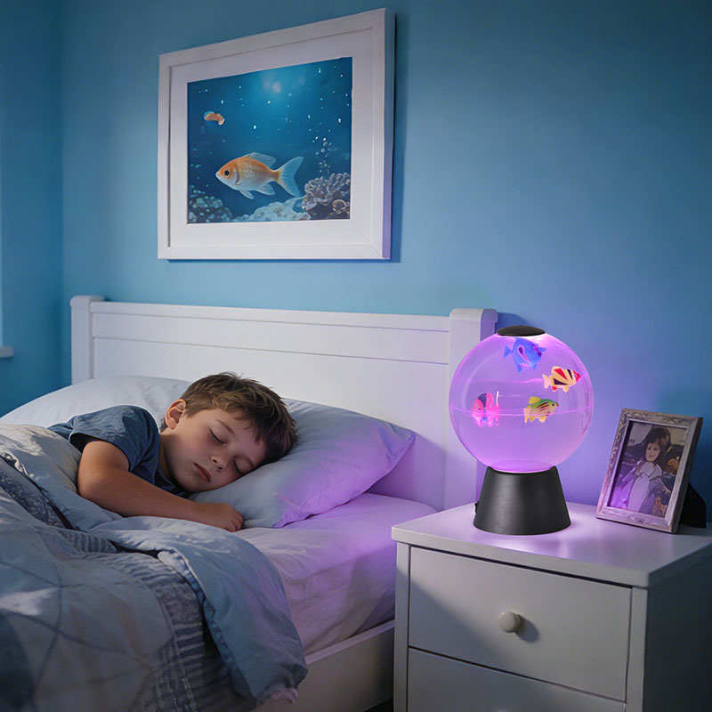 బహుముఖ అలంకార వస్తువుగా రూపొందించబడిన ఈ యానిమేటెడ్ ఫిష్ గ్లోబ్ బహుళ ప్రయోజనాల కోసం ఉపయోగపడుతుంది: ఓదార్పునిస్తుంది