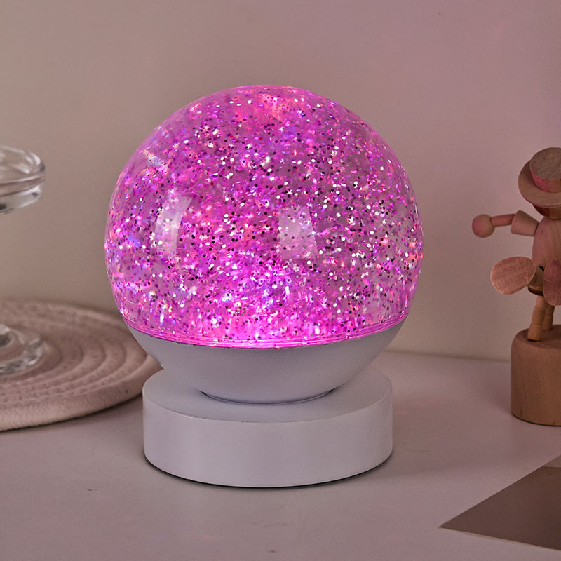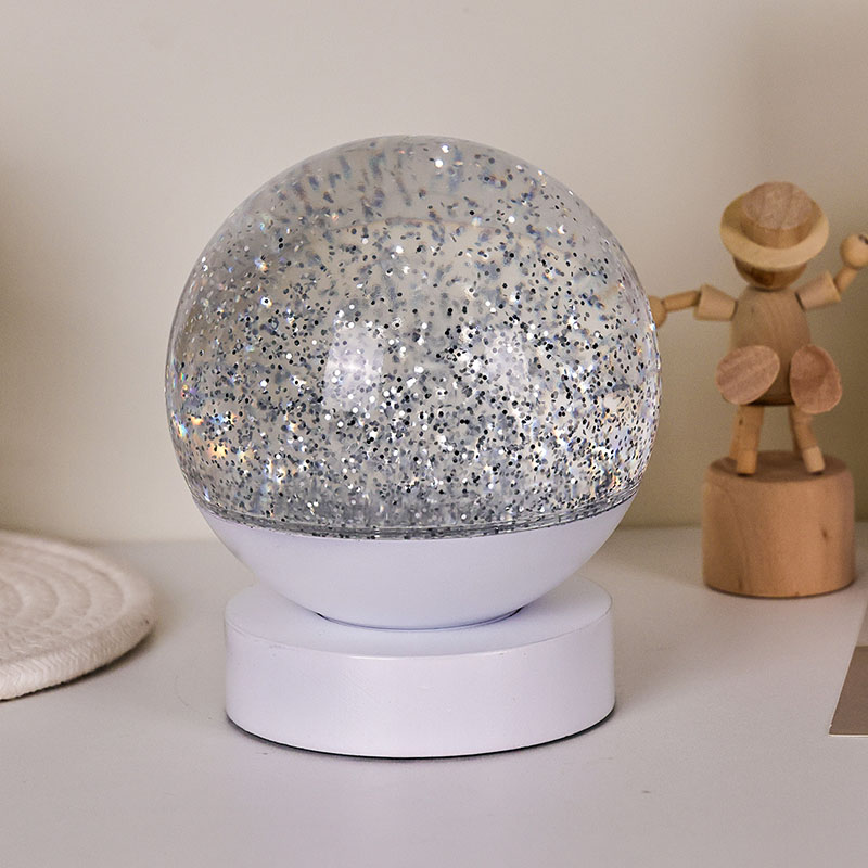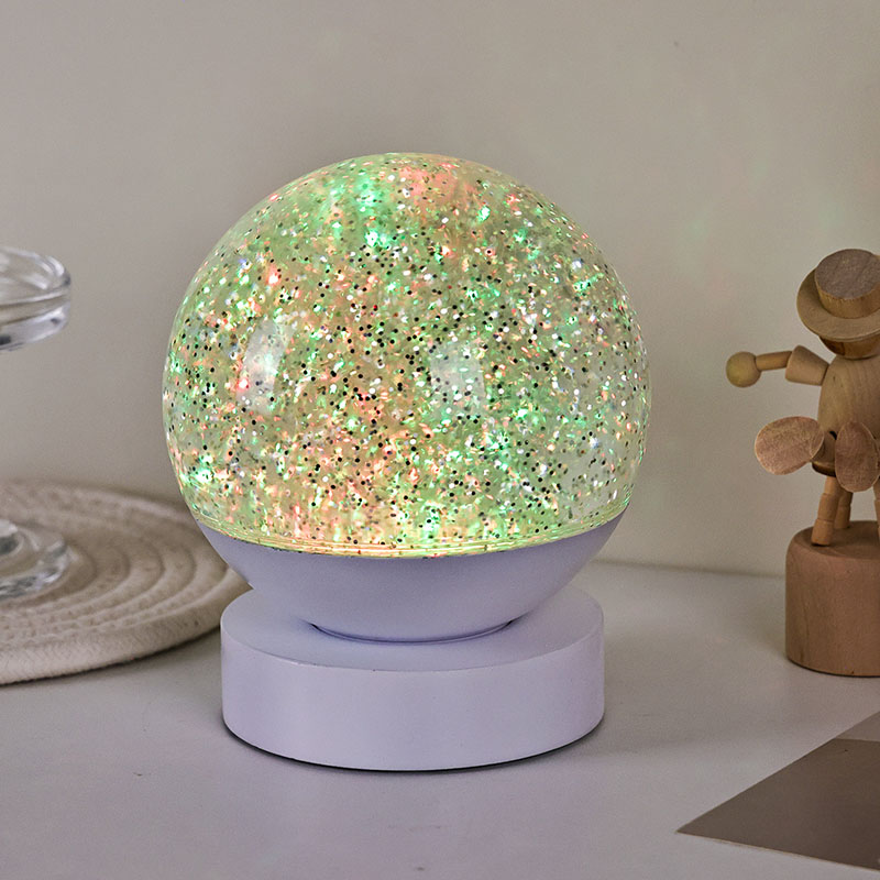 ప్రత్యేకమైన "ప్రవహించే కాంతి మరియు నీడ" ప్రభావం మొత్తం గోళాన్ని శ్వాస గ్రహంలా చేస్తుంది, ద్రవంలో తేలియాడే మరియు తిరుగుతున్న లైట్లతో, మీ కళ్ళ ముందు పాలపుంత యొక్క నెమ్మదిగా ప్రవాహాన్ని పోలి ఉంటుంది. ఇది రాత్రిపూట నిద్రలో సున్నితమైన సహచరుడైనా లేదా హాలిడే పార్టీలకు అబ్బురపరిచే అలంకరణ అయినా, ఇది ఎల్లప్పుడూ కేంద్ర బిందువుగా ఉంటుంది. అదనంగా, ఇది నిశ్శబ్ద ఆపరేషన్ను కలిగి ఉంటుంది, పిల్లల నిద్రకు ఎటువంటి భంగం కలిగించకుండా, ఇది ఆదర్శవంతమైన ఓదార్పు రాత్రి కాంతిగా చేస్తుంది.