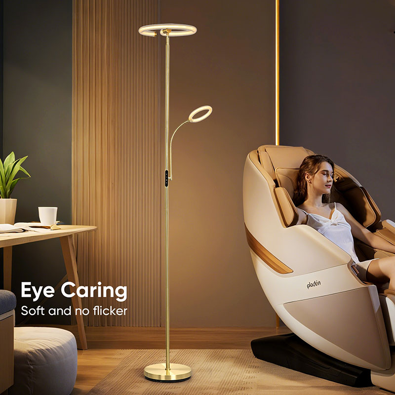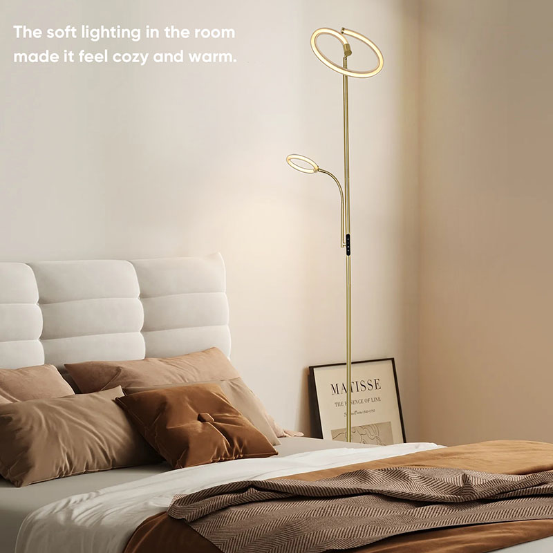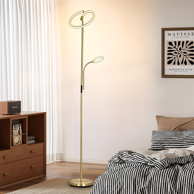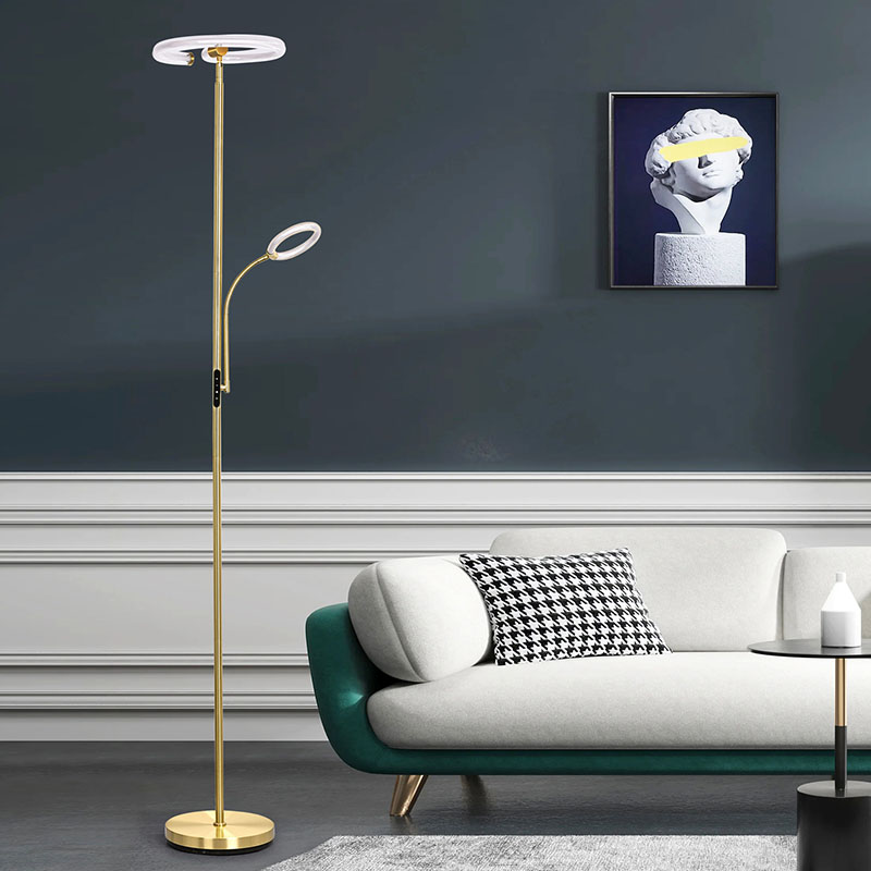 అధ్యయనం, లివింగ్ రూమ్ కోసం లగ్జరీ గోల్డ్ లెడ్ ఫ్లోర్ ల్యాంప్ పరిసర వాతావరణంతో సంపూర్ణంగా మిళితం చేయగలదు, మొత్తం స్థలం యొక్క రుచి మరియు శైలిని మెరుగుపరుస్తుంది