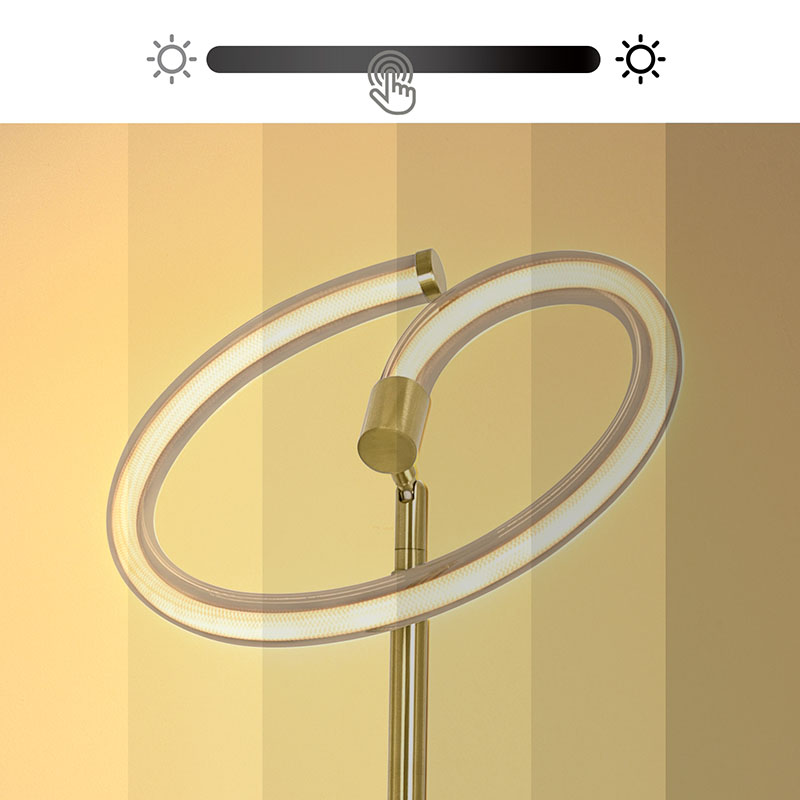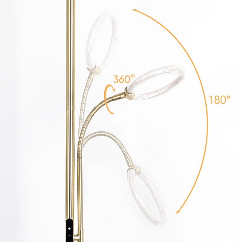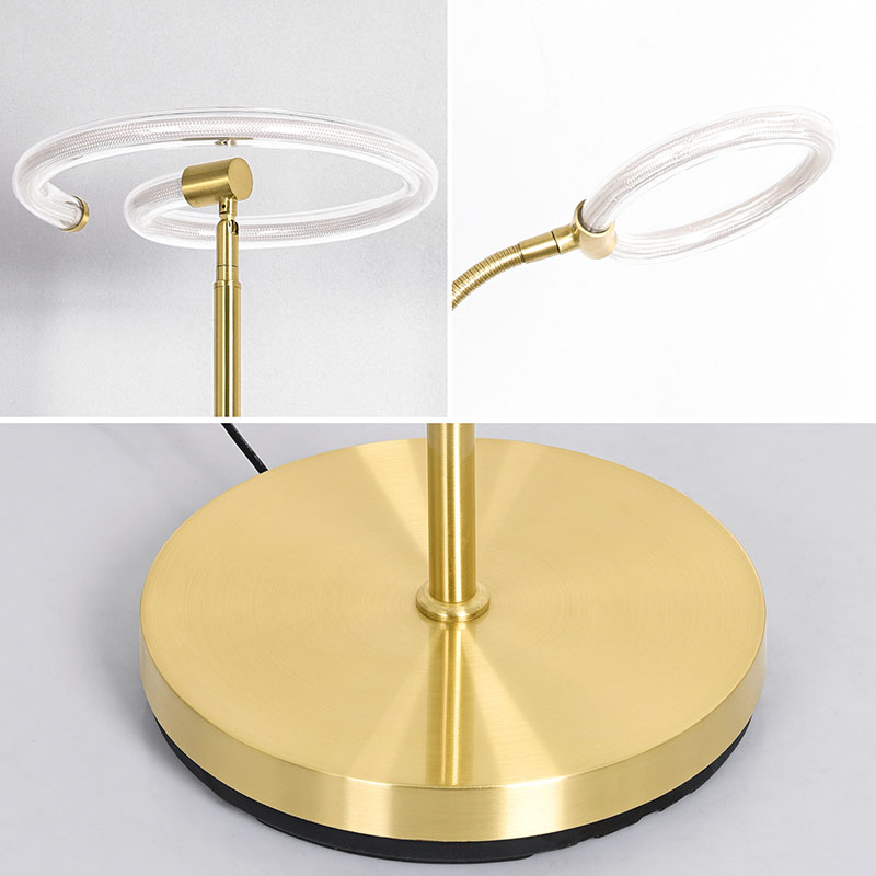 బ్రాస్, శాటిన్ నికెల్లివింగ్ రూమ్ కోసం లగ్జరీ గోల్డ్ లెడ్ ఫ్లోర్ ల్యాంప్ గోల్డెన్ మెటల్ మెటీరియల్ మరియు సిలికాన్ ట్యూబ్తో 360 డిగ్రీల వెలుతురుతో రూపొందించబడింది, ఇది ప్రత్యేకమైన ఆకర్షణ మరియు అద్భుతమైన కార్యాచరణతో ఆధునిక గృహాలకు ఆదర్శవంతమైన ఎంపికగా మారింది,