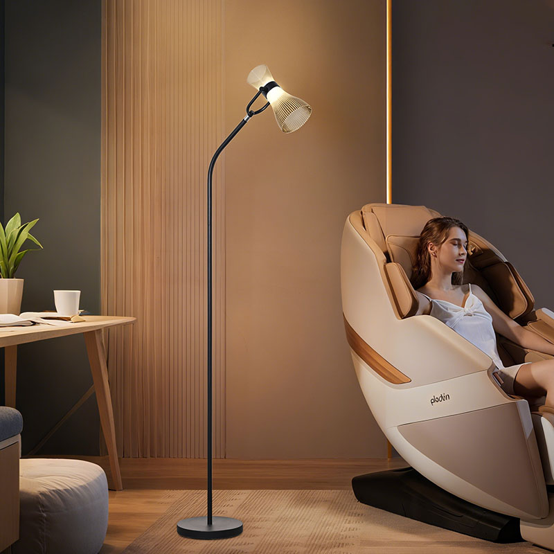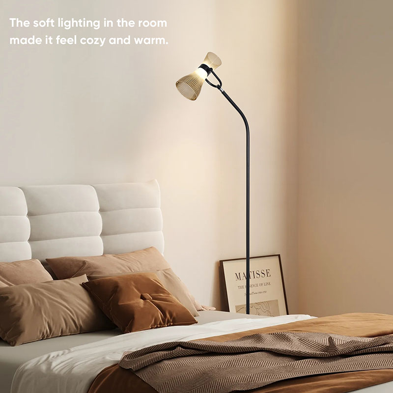 మృదువైన మరియు సహజమైన పంక్తులు, గొప్ప మరియు సొగసైన వాతావరణాన్ని ప్రదర్శిస్తాయి. గ్లాస్ లాంప్షేడ్ దీపానికి పారదర్శక మరియు స్వచ్ఛమైన ఆకృతిని ఇవ్వడమే కాకుండా, కాంతిని ప్రభావవంతంగా ప్రసరింపజేస్తుంది, కాంతిని మృదువుగా మరియు ఏకరీతిగా చేస్తుంది. లివింగ్ రూమ్లో, బెడ్రూమ్లో లేదా స్టడీలో ఉంచినా, గ్లాస్ షేడ్తో ఆధునిక లెడ్ ఫ్లోర్ ల్యాంప్ ఖచ్చితంగా ఉంటుంది