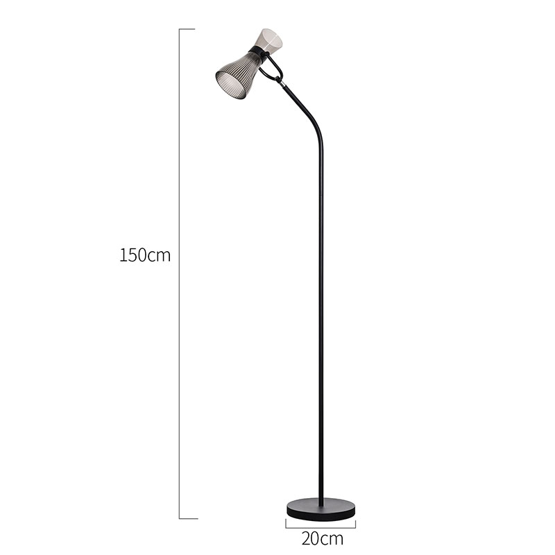 ఫుట్ డిమ్మింగ్ స్విచ్గ్లాస్ షేడ్తో కూడిన ఆధునిక లెడ్ ఫ్లోర్ ల్యాంప్ మినిమలిస్ట్ డిజైన్ కాన్సెప్ట్ను అవలంబిస్తుంది, సాధారణ ఇంకా స్టైలిష్ మొత్తం ఆకృతితో. 150 సెంటీమీటర్ల ఎత్తు మరియు 20 సెంటీమీటర్ల మూల వ్యాసం ఎక్కువ స్థలాన్ని తీసుకోకుండా తగినంత ఉనికిని ఇస్తుంది. మెటల్ రాడ్ మరియు బేస్ మృదువైన మరియు సున్నితమైన ఉపరితలంతో చక్కగా పాలిష్ చేయబడ్డాయి,