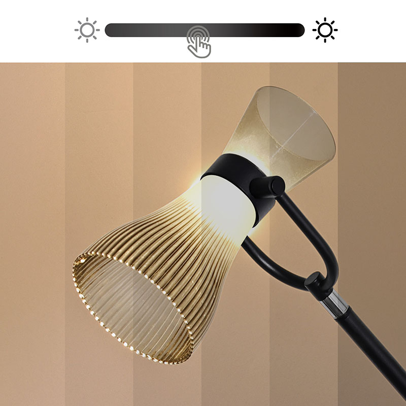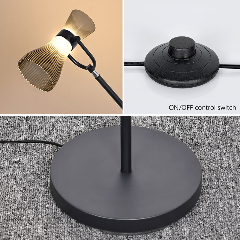 గ్లాస్ షేడ్తో కూడిన ఆధునిక లెడ్ ఫ్లోర్ ల్యాంప్ అధునాతన LED లైట్ సోర్సెస్తో అమర్చబడి ఉంటుంది, ఇవి మృదువైన మరియు ప్రకాశవంతమైన కాంతిని విడుదల చేస్తాయి, మీ కళ్ళను ప్రభావవంతంగా రక్షిస్తాయి మరియు దీర్ఘకాలం కంటి వాడకం వల్ల కలిగే అలసట మరియు అసౌకర్యాన్ని తగ్గిస్తాయి.
