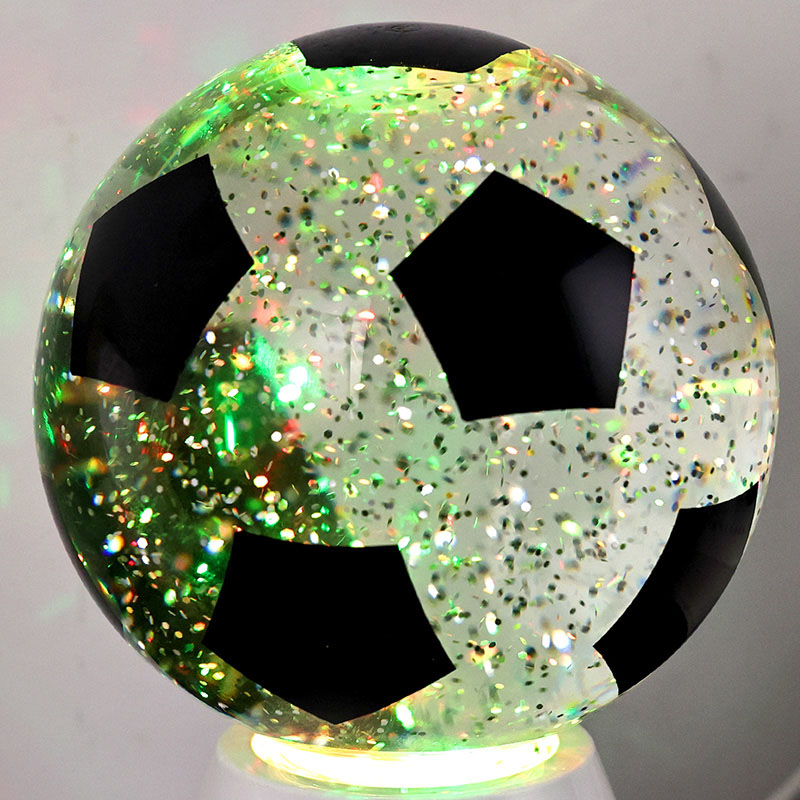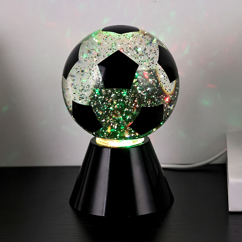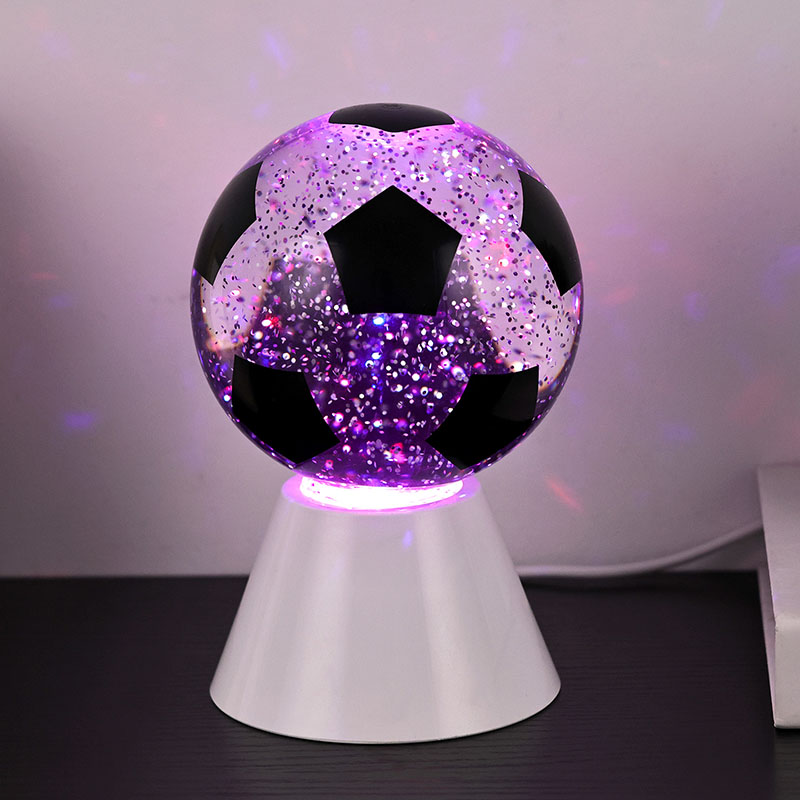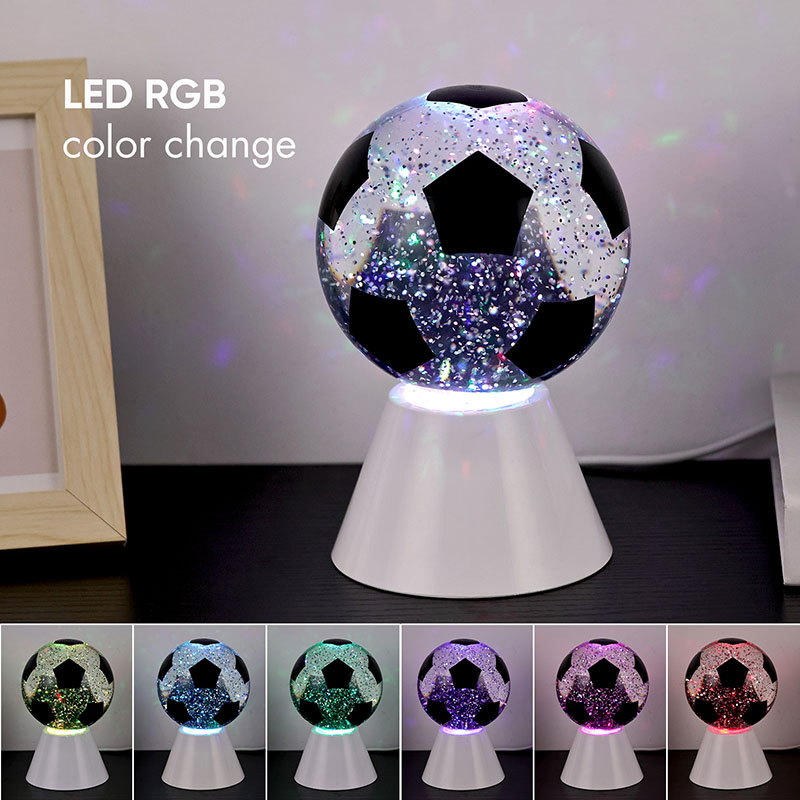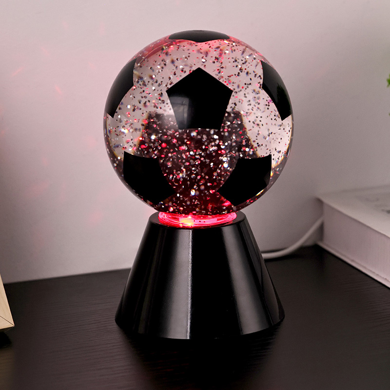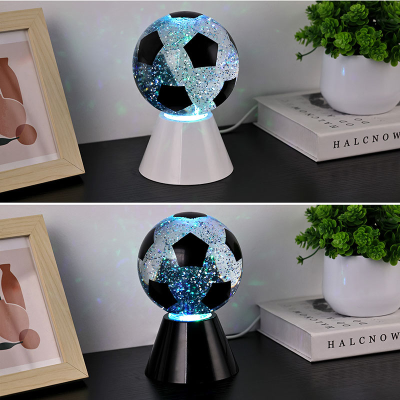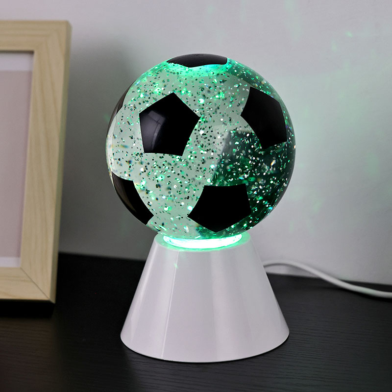 తెలుపు + LED రంగు మారుతోందిగోళాకార గిఫ్ట్ లైట్ ఎగువ గాజు మరియు ప్లాస్టిక్ బేస్తో కూడి ఉంటుంది. గాజు ఉపరితలం ఫుట్బాల్ నమూనాలతో ముద్రించబడింది, వీటిని వివిధ రంగులలో ముద్రించవచ్చు. నైట్ లైట్ విత్ ఫుట్బాల్ షేడ్ యొక్క ప్రధాన లక్షణం ఏమిటంటే, గోళం లోపల ద్రవం ఉంటుంది, ఇందులో సీక్విన్స్ ఉంటాయి. స్విచ్ ఆన్ చేసిన తర్వాత, అంతర్నిర్మిత చిన్న మోటారు పనిచేయడం ప్రారంభిస్తుంది మరియు గాజు లోపల ఉన్న ద్రవం సక్రమంగా కదులుతుంది. అదే సమయంలో, ఫుట్బాల్ షేడ్తో కూడిన నైట్ లైట్ యొక్క దిగువ కాంతి మార్చడం ప్రారంభమవుతుంది, ఇది చాలా అందంగా ఉంటుంది. ఫుట్బాల్ షేడ్తో కూడిన నైట్ లైట్ ప్రధానంగా ఇంటీరియర్ డెకరేషన్, గదులు, లివింగ్ రూమ్లు, హోటల్ గదులు మరియు ఇతర ప్రదేశాలలో ఉపయోగించబడుతుంది, ఉత్పత్తి USB ఛార్జింగ్తో కూడా వస్తుంది మరియు 3AAA బ్యాటరీలను ఉపయోగించవచ్చు.