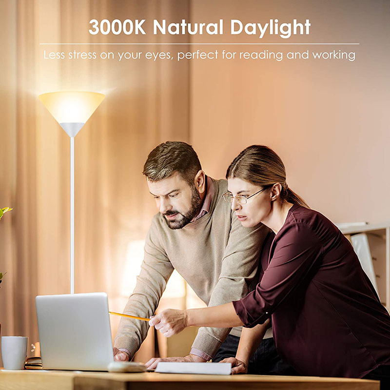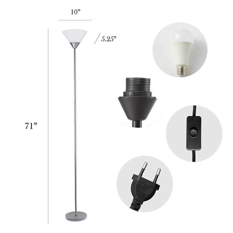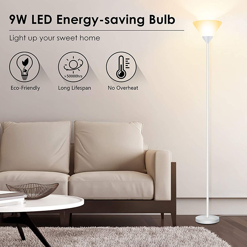 9W LED ఎనర్జీ సేవింగ్ బల్బ్తో ల్యాంప్ ఫ్లోర్ కవర్. మిరుమిట్లు గొలిపేలా నివారించడానికి మరియు మీ కళ్ళను రక్షించడానికి ఉత్పత్తి లైట్ బల్బ్ పైకి ప్రకాశిస్తుంది.