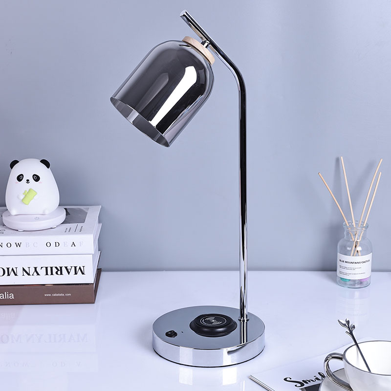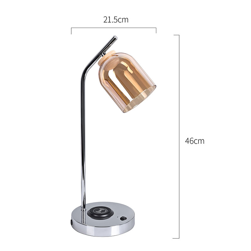 లగ్జరీ గ్లాస్ షేడ్తో తయారు చేయబడిన గ్లాస్ షేడ్తో QI లెడ్ డెస్క్ ల్యాంప్