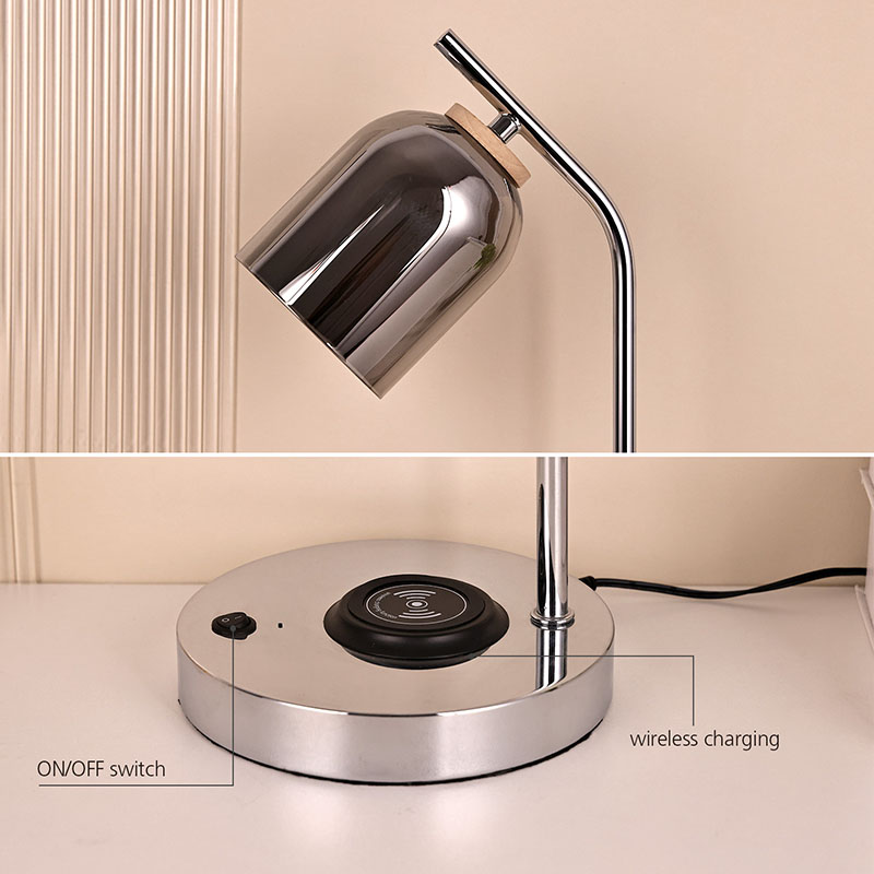 మీ సౌలభ్యం కోసం, గ్లాస్ షేడ్తో కూడిన QI లెడ్ డెస్క్ ల్యాంప్లో మెటల్ వైర్లెస్ మొబైల్ ఫోన్ ఛార్జింగ్ బేస్ కూడా ఉంది. వేగవంతమైన ఛార్జింగ్ కోసం వైర్లెస్ ఛార్జింగ్ ఎనేబుల్ చేయబడిన ఫోన్ను బేస్పై సున్నితంగా ఉంచండి, దుర్భరమైన ప్లగ్గింగ్ కార్యకలాపాల అవసరం లేకుండా. వైర్లెస్ ఛార్జింగ్ టెక్నాలజీ వినియోగ సౌలభ్యాన్ని మెరుగుపరచడమే కాకుండా, మీ డెస్క్టాప్ను మరింత చక్కగా మరియు అందంగా మార్చే విధంగా మెస్సీ వైర్ల సమస్యను నివారిస్తుంది. అదనంగా, మెటల్ బేస్ మంచి వేడి వెదజల్లడం పనితీరును కలిగి ఉంది, ఇది ఛార్జింగ్ ప్రక్రియ యొక్క భద్రత మరియు విశ్వసనీయతను నిర్ధారిస్తుంది