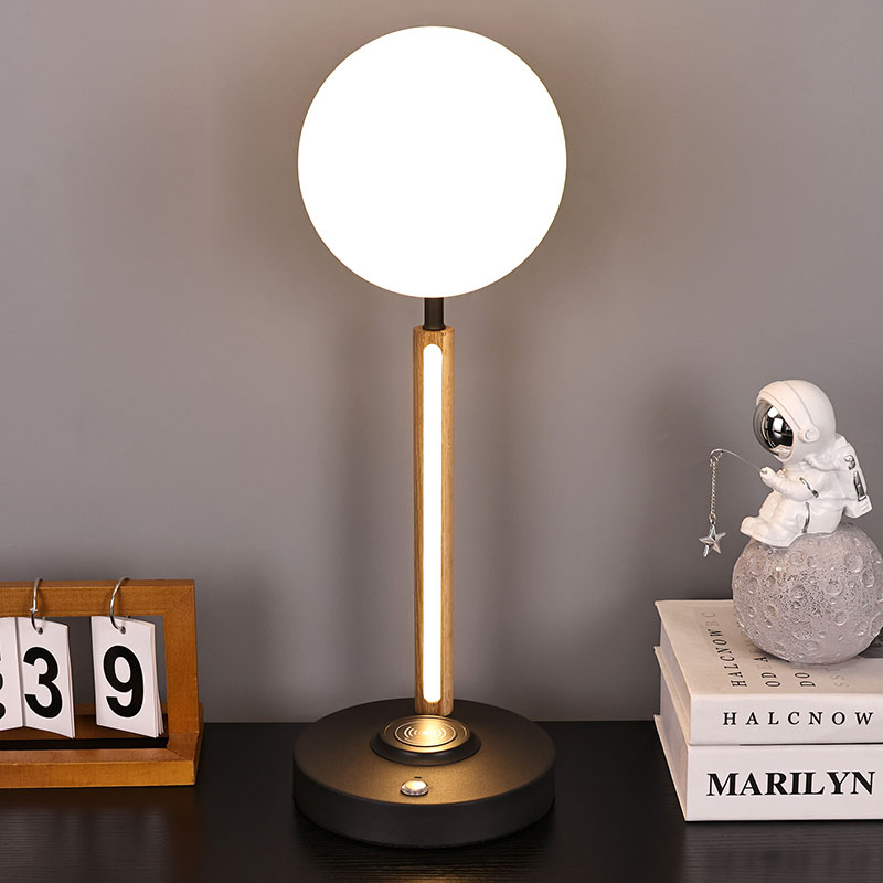 ఈ గోళాకార గాజు lampshade మరియు చెక్క దీపం శరీరం చిన్న డెస్క్ దీపం ఒక ఆచరణాత్మక లైటింగ్ సాధనం మాత్రమే, కానీ కూడా ఒక సున్నితమైన అలంకరణ. ఇది మొత్తం స్థలానికి ఆధునిక మరియు కళాత్మక వాతావరణాన్ని జోడించి, గదిలో మూలలో ఉంచవచ్చు; పడకగదిలో పడక పట్టిక పక్కన ఉంచవచ్చు, ప్రతి శాంతియుత రాత్రి ద్వారా మీతో పాటు; దీనిని స్టడీలో డెస్క్ పక్కన కూడా ఉంచవచ్చు, ఇది మీకు తగినంత మరియు మృదువైన పని కాంతిని అందిస్తుంది.