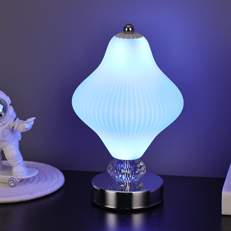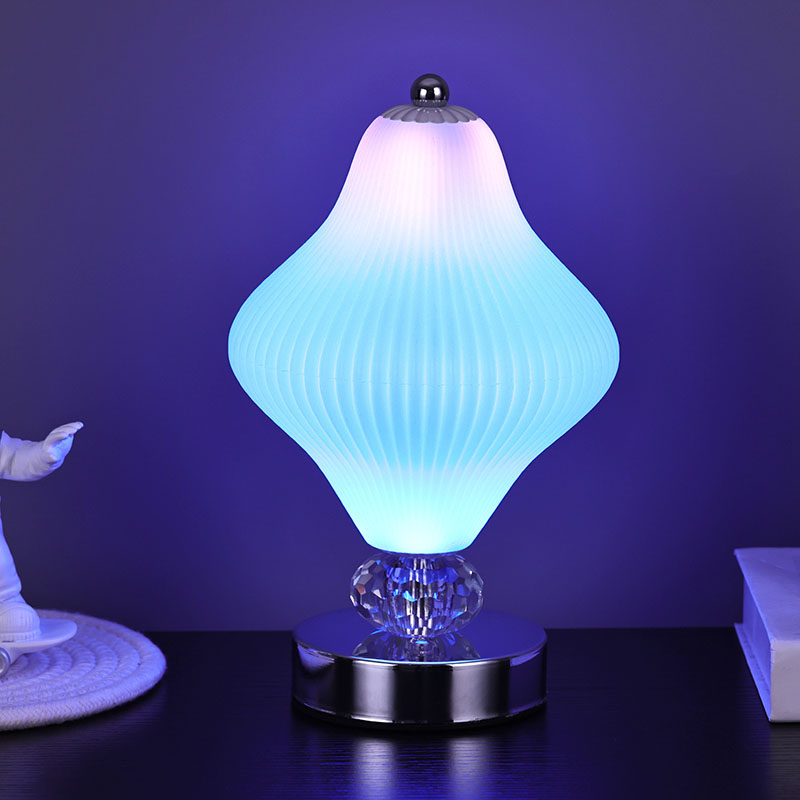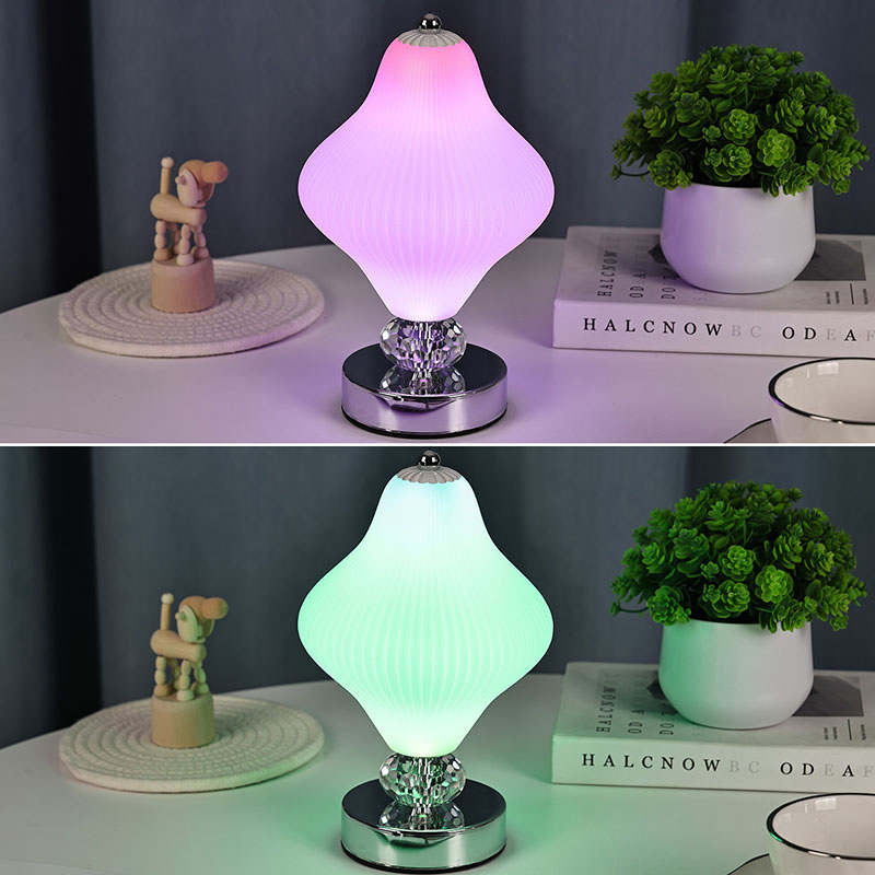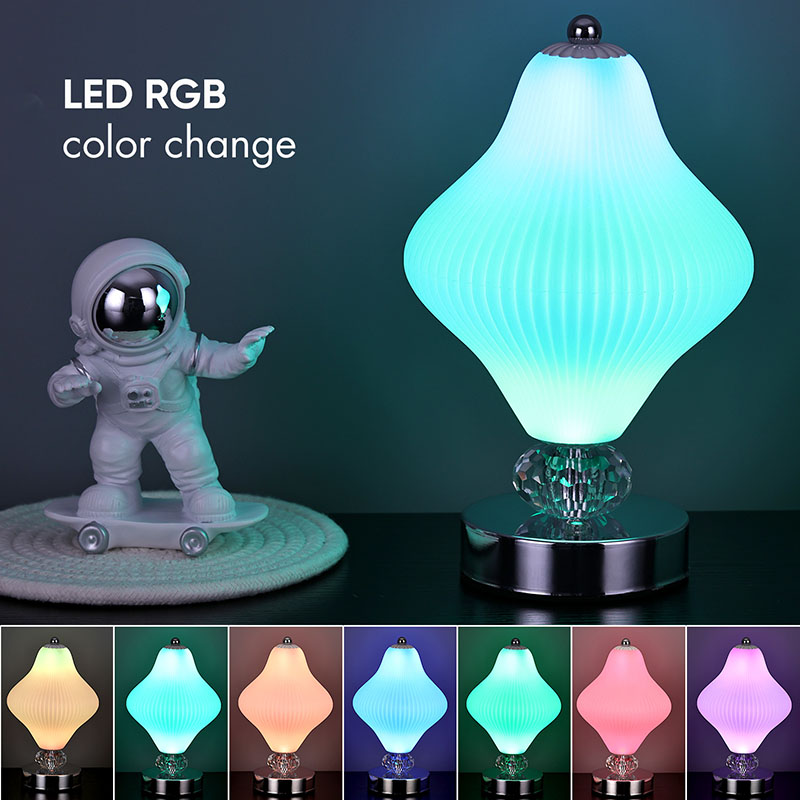 దాని ప్రత్యేకమైన లాంప్షేడ్ డిజైన్తో పాటు, ఈ చిన్న డెస్క్ ల్యాంప్ iridescent RGB కలర్ ఫంక్షనాలిటీని కూడా కలిగి ఉంది. అధునాతన LED సాంకేతికత ద్వారా, లైటింగ్ ఫిక్చర్లు మృదువైన మరియు ఏకరీతి కాంతిని విడుదల చేయగలవు మరియు వివిధ దృశ్యాలు మరియు అవసరాలకు అనుగుణంగా కాంతి రంగును స్వేచ్ఛగా సర్దుబాటు చేయగలవు. మీరు మీకు ఇష్టమైన రంగును ఎంచుకోవచ్చు లేదా కలర్ఫుల్ విజువల్ ఫీస్ట్ని సృష్టించడానికి లైటింగ్ ఫిక్చర్లు స్వయంచాలకంగా రంగులను మార్చుకోవచ్చు.