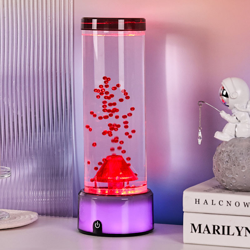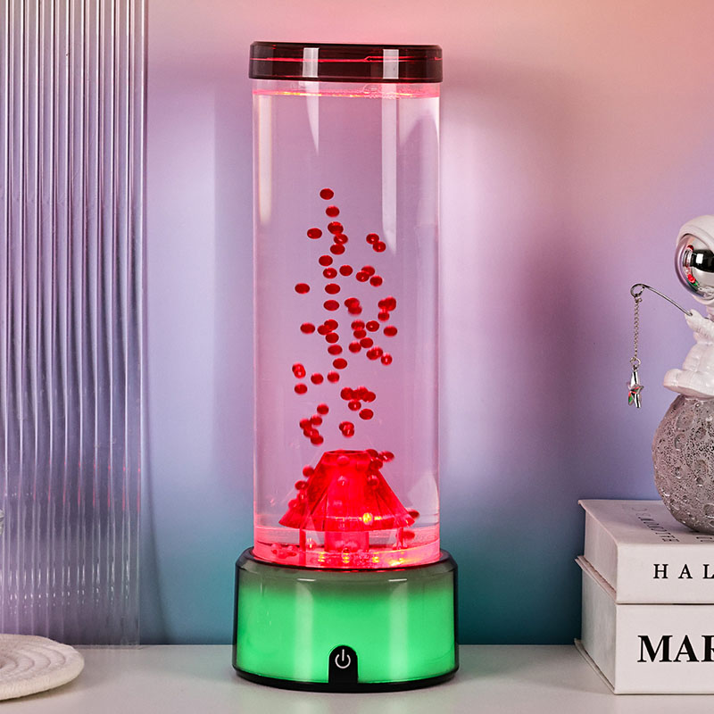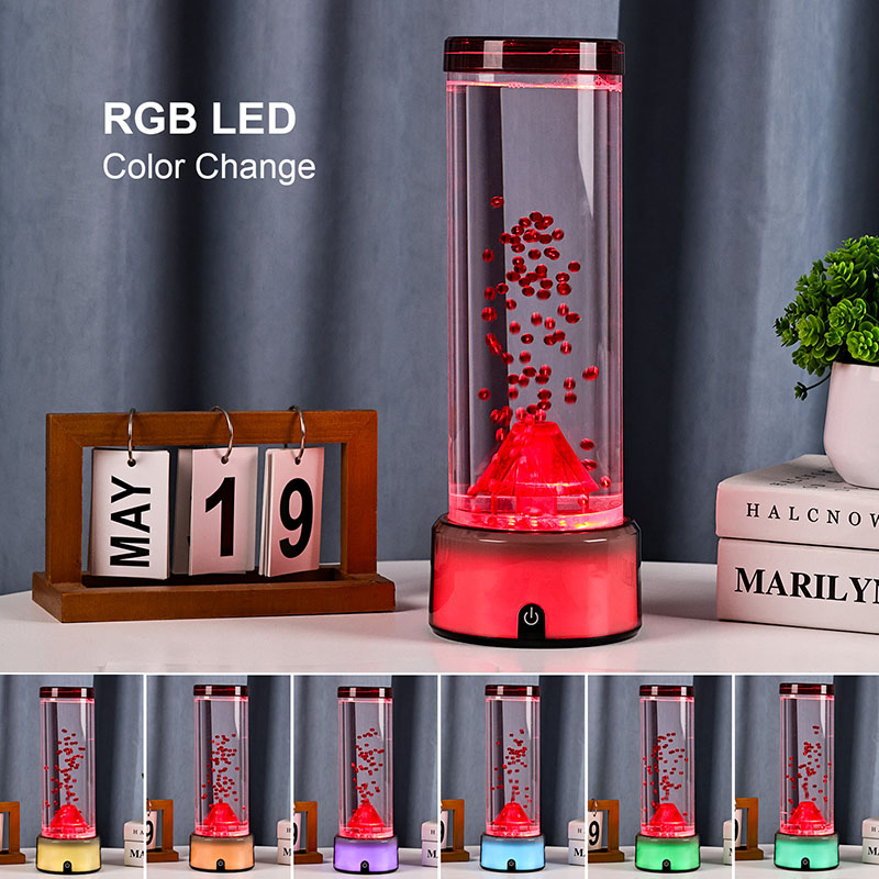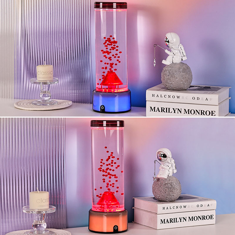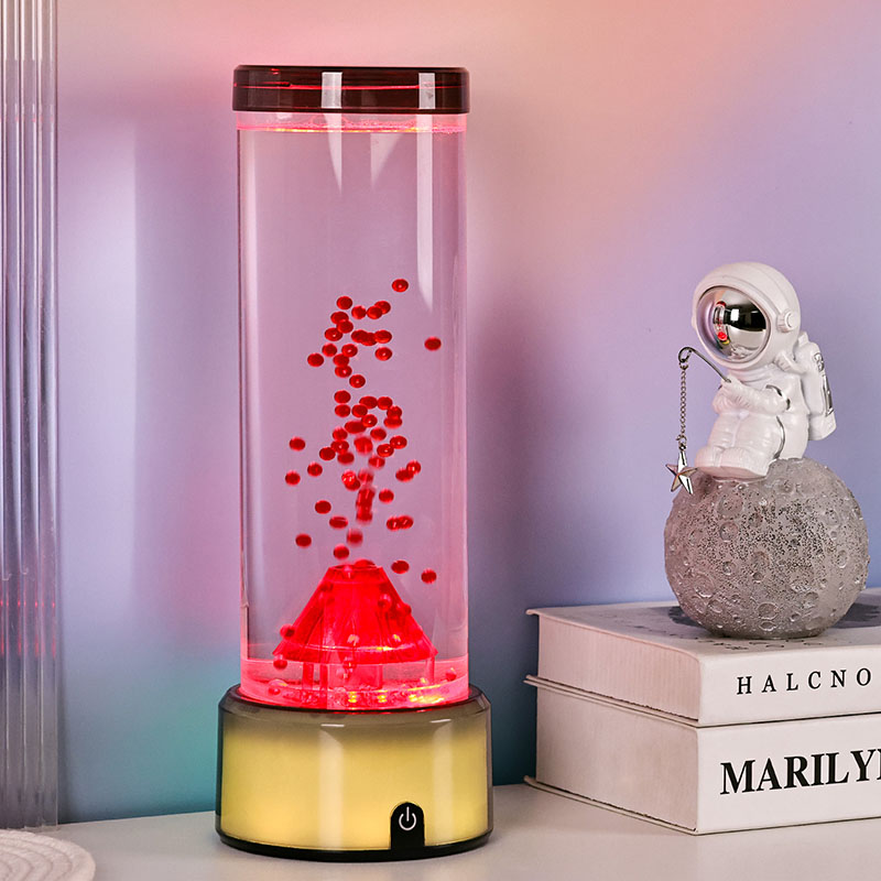 2. బెడ్రూమ్ నైట్లైట్ పిల్లలకు, సున్నితమైన గ్లో మరియు ఓదార్పు కదలిక రాత్రి సమయంలో సౌకర్యం మరియు భద్రతను అందిస్తుంది. ప్రవహించే కణాల ప్రశాంతత ప్రభావం మరియు రంగులు మారడం ఆందోళనను తగ్గించడానికి మరియు మంచి నిద్రను ప్రోత్సహించడంలో సహాయపడుతుంది. అగ్నిపర్వతాలు మరియు సముద్ర జీవితం గురించి వినోదాత్మక విద్యా సాధనంగా దాని భద్రతా లక్షణాలను మరియు రెట్టింపు సామర్థ్యాన్ని తల్లిదండ్రులు అభినందిస్తున్నారు.