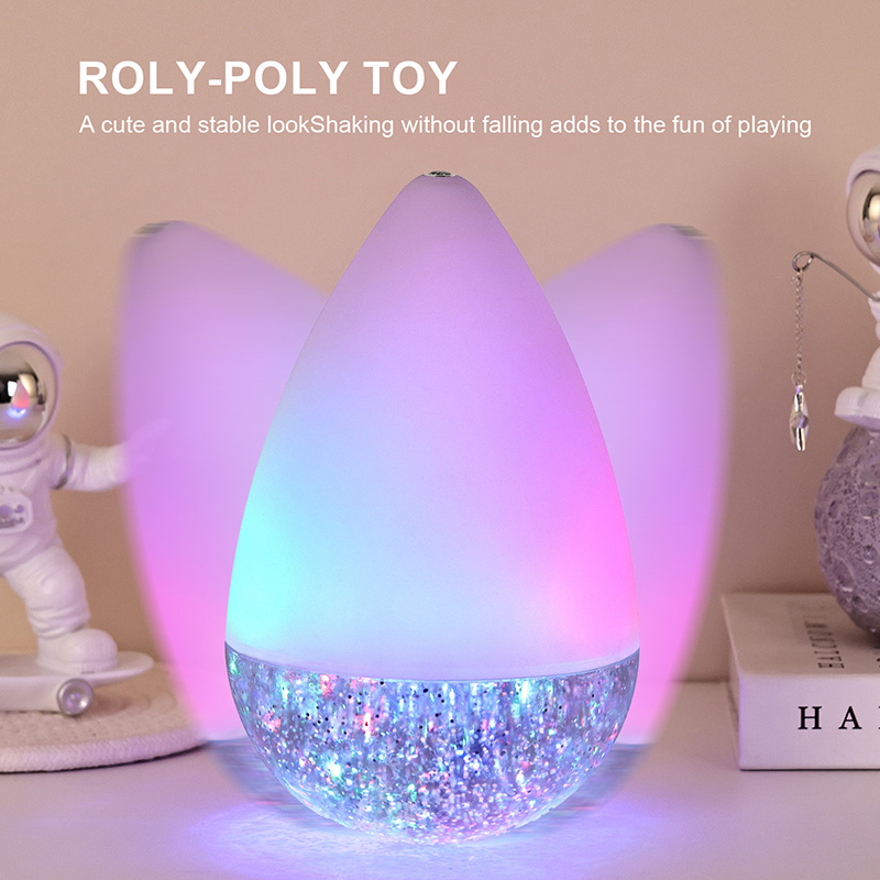 లక్షణం ఏమిటంటే, అది ఎలా కదిలినా, RGB గ్లిటర్ రంగురంగుల రోలీ-పాలీ టాయ్ నైట్ లైట్ నిలుస్తుంది