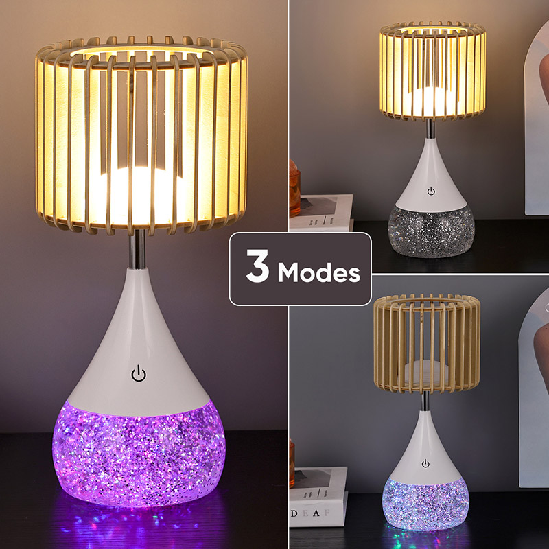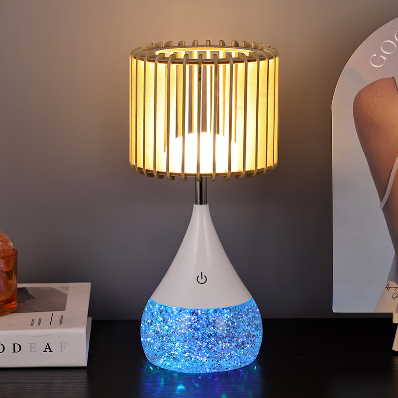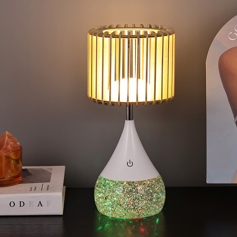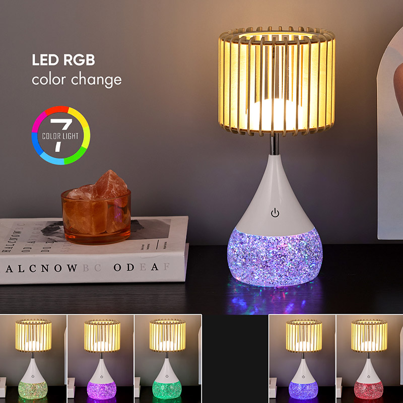 కొత్త డిజైన్ LED టేబుల్ ల్యాంప్ను పరిచయం చేస్తున్నాము, ఇది ఆధునిక డిజైన్ మరియు అధునాతన లైటింగ్ టెక్నాలజీ యొక్క సంపూర్ణ సమ్మేళనం, ఇది మీ నివాస స్థలాన్ని సౌకర్యం మరియు శైలి యొక్క స్వర్గధామంగా మారుస్తుంది. ఈ వినూత్న టేబుల్ ల్యాంప్ ప్రత్యేకమైన చెక్క స్లాట్ లాంప్షేడ్, RGB రంగును మార్చే బేస్ మరియు సర్దుబాటు చేయగల వెచ్చని కాంతి తీవ్రతతో అధిక-నాణ్యత ప్లాస్టిక్ పదార్థాలను మిళితం చేస్తుంది, ఇది ఏదైనా ఇల్లు లేదా కార్యాలయానికి అనువైన అదనంగా ఉంటుంది.