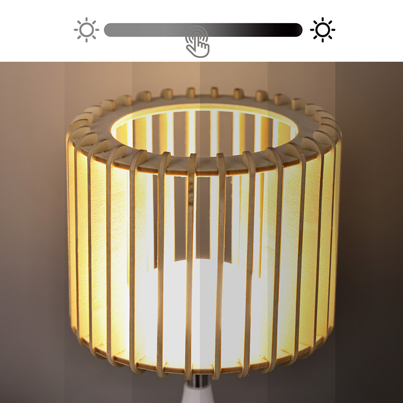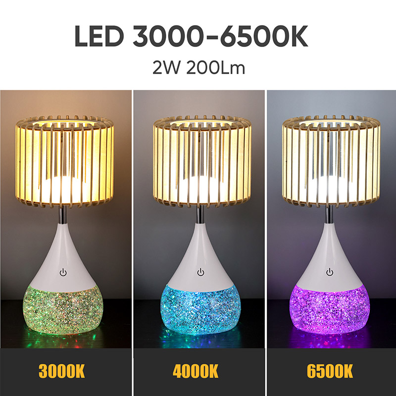 అధిక-నాణ్యత ప్లాస్టిక్ పదార్థాలు మరియు సహజ కలప పలకలతో తయారు చేయబడిన, కొత్త డిజైన్ LED టేబుల్ లాంప్ చివరిగా నిర్మించబడింది. ధృడమైన బేస్ స్థిరత్వాన్ని నిర్ధారిస్తుంది, చింతించకుండా ఏదైనా ఉపరితలంపై ఉంచడానికి మిమ్మల్ని అనుమతిస్తుంది. మన్నికైన నిర్మాణం అంటే ఈ దీపం రోజువారీ వినియోగాన్ని తట్టుకోగలదు, ఇది మీ డెకర్కు నమ్మకమైన మరియు దీర్ఘకాలిక అదనంగా ఉంటుంది.