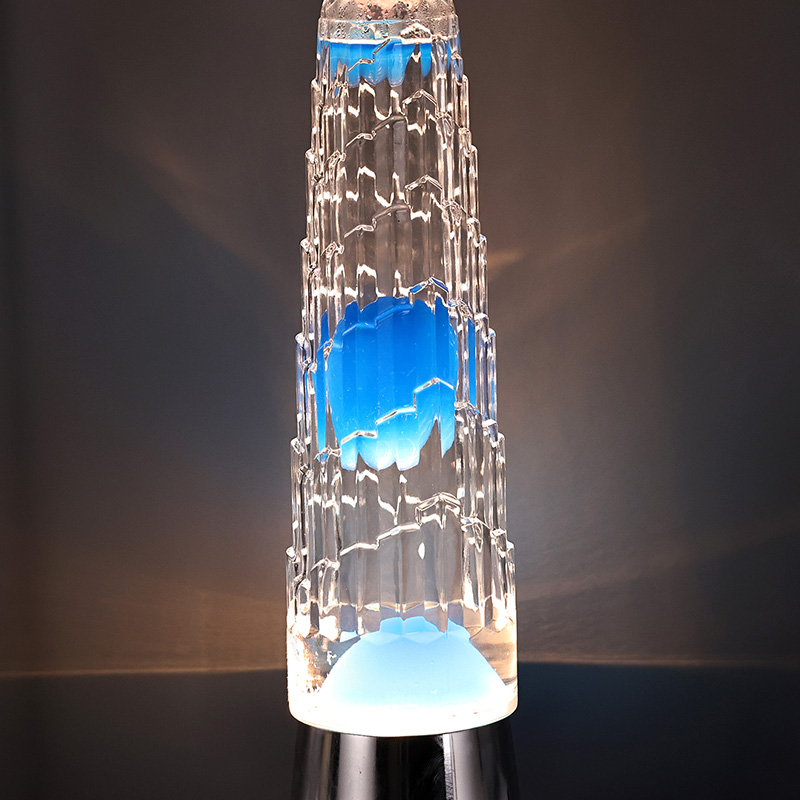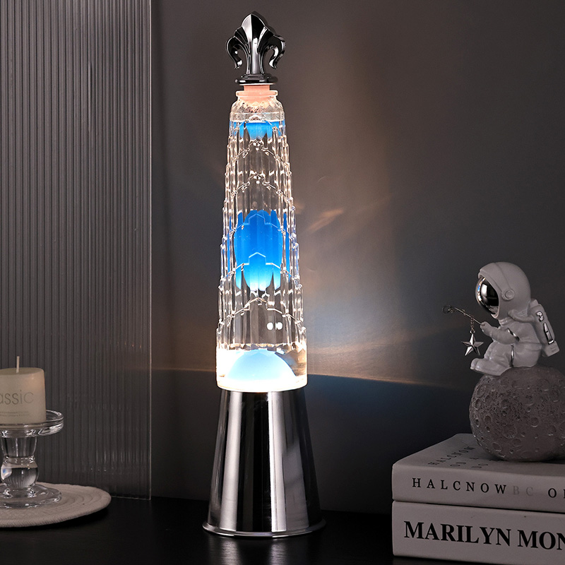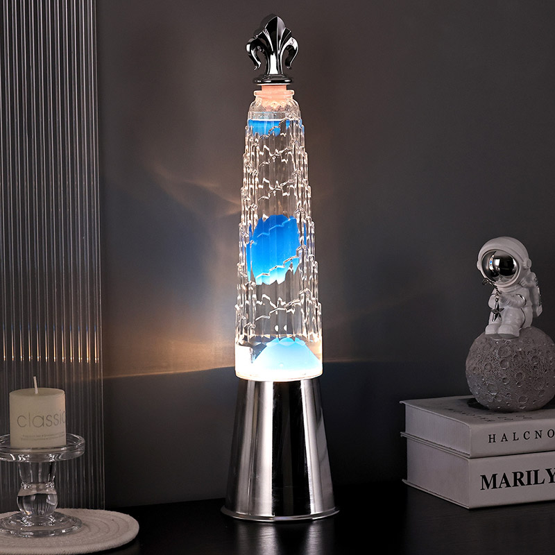 టవర్ షేడ్ లావా ల్యాంప్ టేబుల్ ల్యాంప్ మృదువైన లైటింగ్ను అందించడమే కాకుండా, మీ కోసం కలలు కనే వాతావరణాన్ని కూడా సృష్టిస్తుంది. మీరు ఈ దీపాన్ని చూసిన ప్రతిసారీ, నీలిరంగు మైనపు స్పష్టమైన నీటిలో ప్రవహిస్తుంది