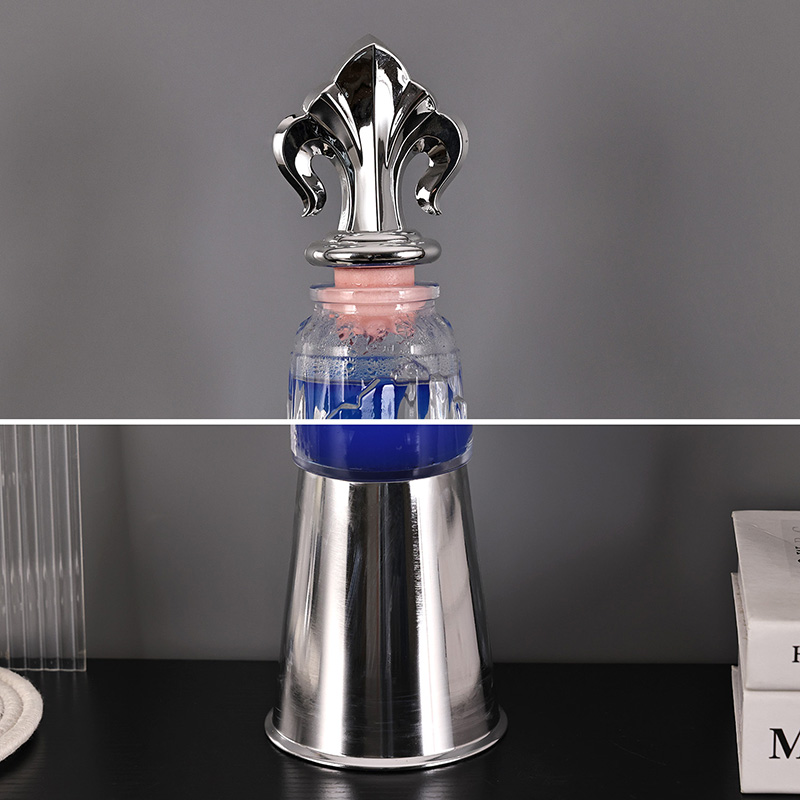 స్పష్టమైన నీరు లోతైన సముద్రంలో రహస్యమైన జీవుల వలె నెమ్మదిగా ప్రవహిస్తుంది, ప్రశాంతమైన మరియు కలలాంటి వాతావరణాన్ని సృష్టిస్తుంది. వెండి బేస్ రూపకల్పన స్థిరంగా మరియు సొగసైనది, మెరుగుపరుస్తుంది