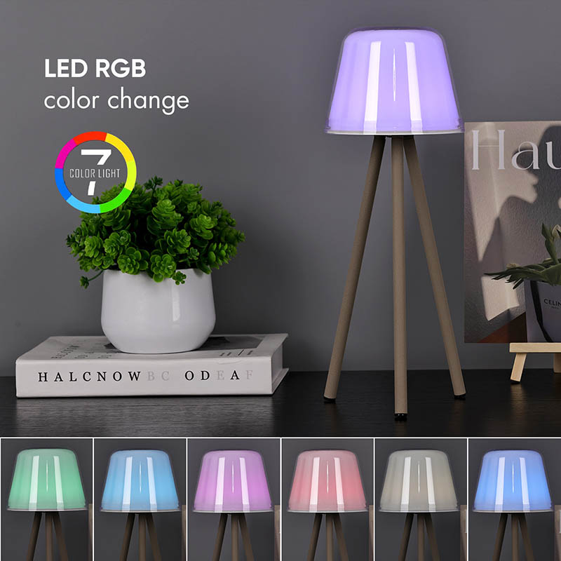 త్రిపాద RGB పుట్టగొడుగు నీడతో డెస్క్ లాంప్ నేతృత్వంలో ఉంది