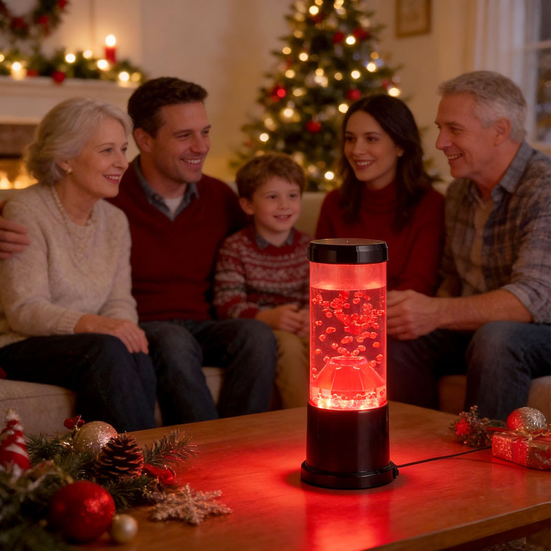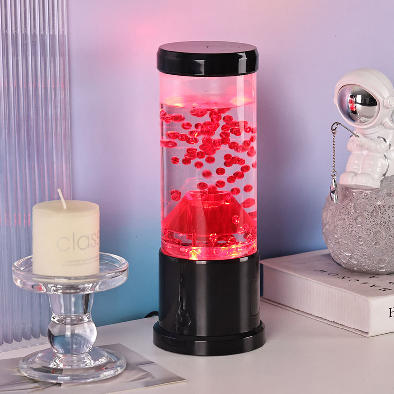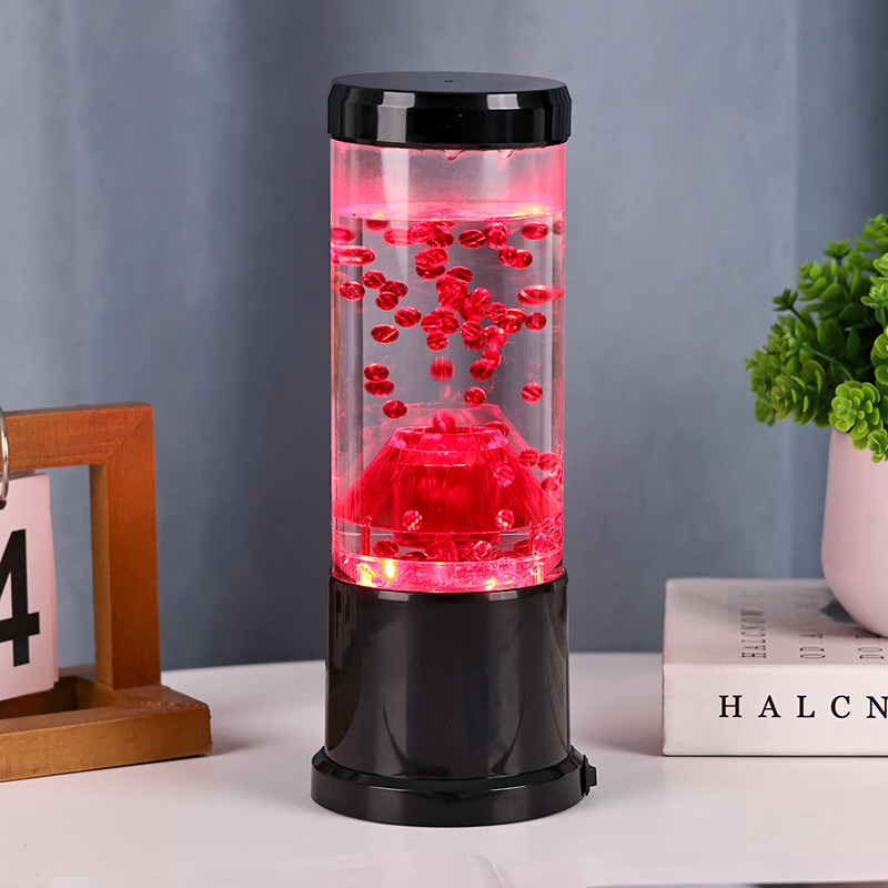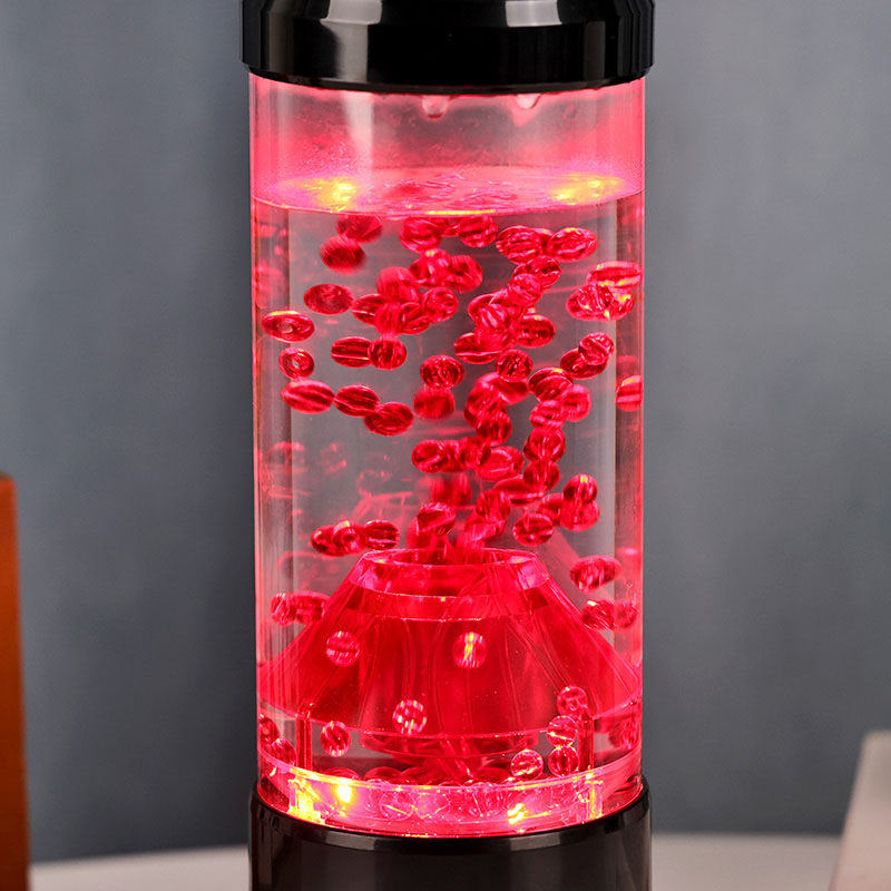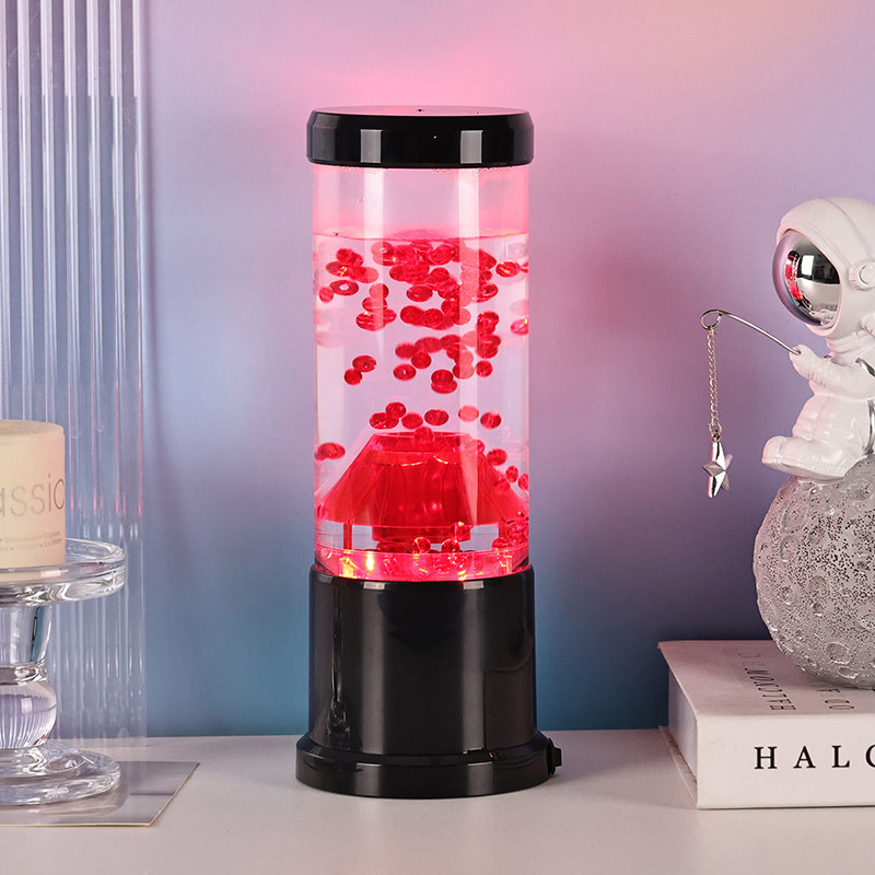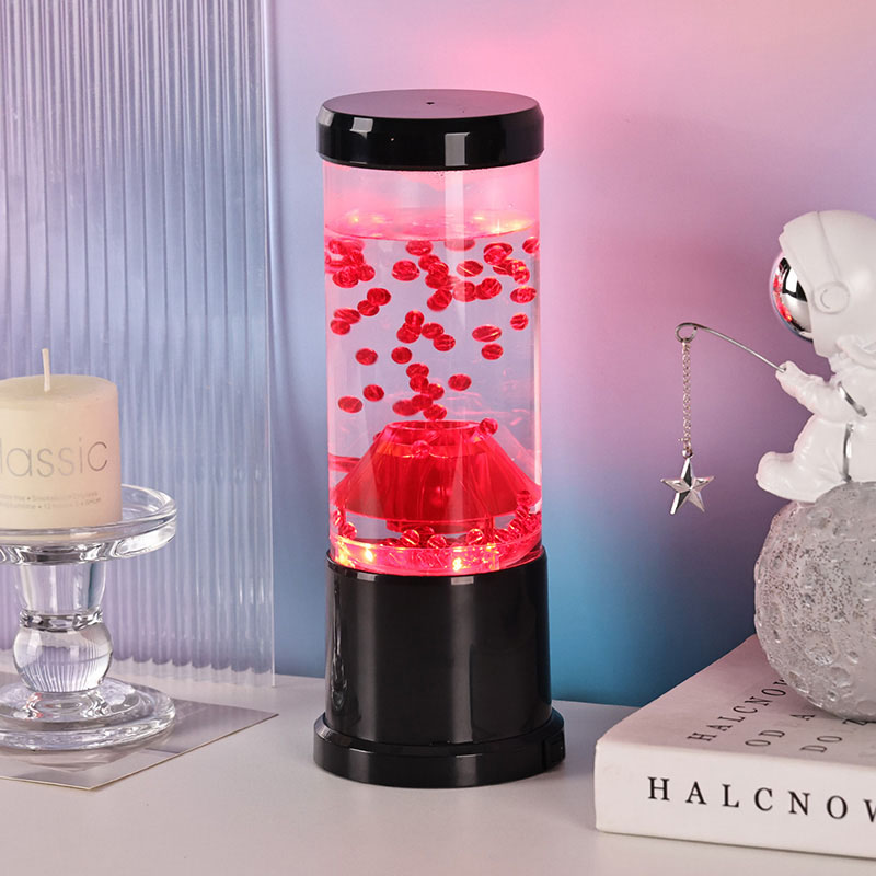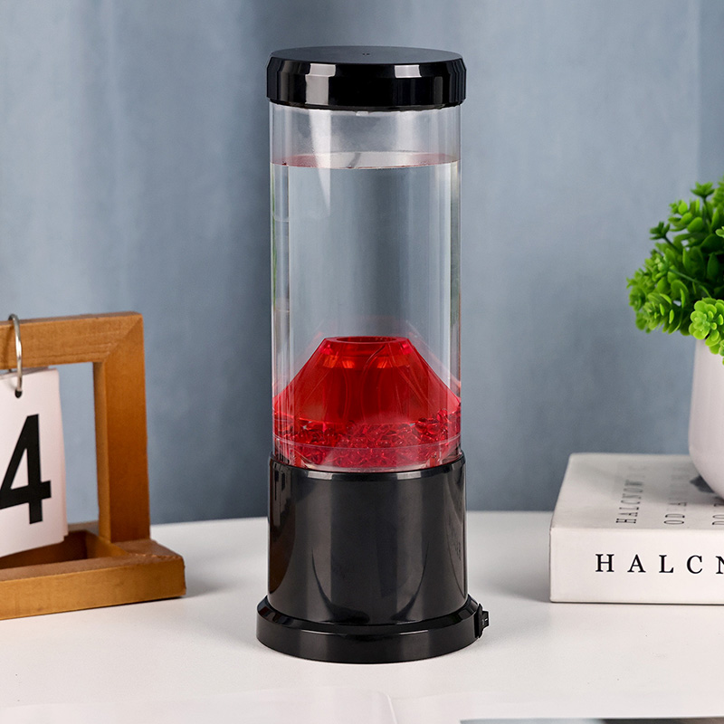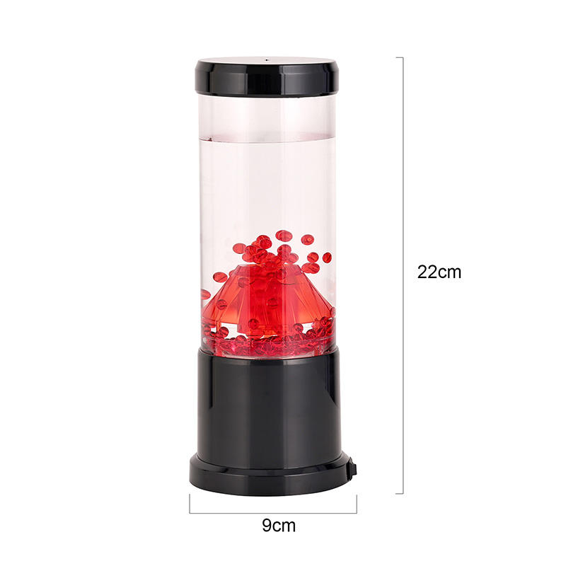 రాత్రి కాంతి యొక్క కేంద్ర భాగం అగ్నిపర్వత బిలంను పోలి ఉండే పారదర్శక కాలమ్. ఈ కాలమ్ లోపల, మీరు ఎర్రటి గోళాల యొక్క శక్తివంతమైన ప్రదర్శనను కనుగొంటారు, ఇది భూమి యొక్క క్రస్ట్లో ప్రవహించే కరిగిన లావాను గుర్తు చేస్తుంది. ఈ గోళాలు స్పష్టమైన ద్రవంలో తేలుతూ ఉంటాయి, డైనమిక్ మరియు ఎప్పటికప్పుడు మారుతున్న దృశ్య ప్రభావాన్ని సృష్టిస్తాయి. కాంతి ప్రకాశిస్తున్నప్పుడు, ఇది వెచ్చని మరియు ఆహ్వానించదగిన గ్లోను ప్రసారం చేస్తుంది, ఏ గదిలోనైనా హాయిగా ఉండే వాతావరణాన్ని సెట్ చేయడానికి ఇది సరైనది.